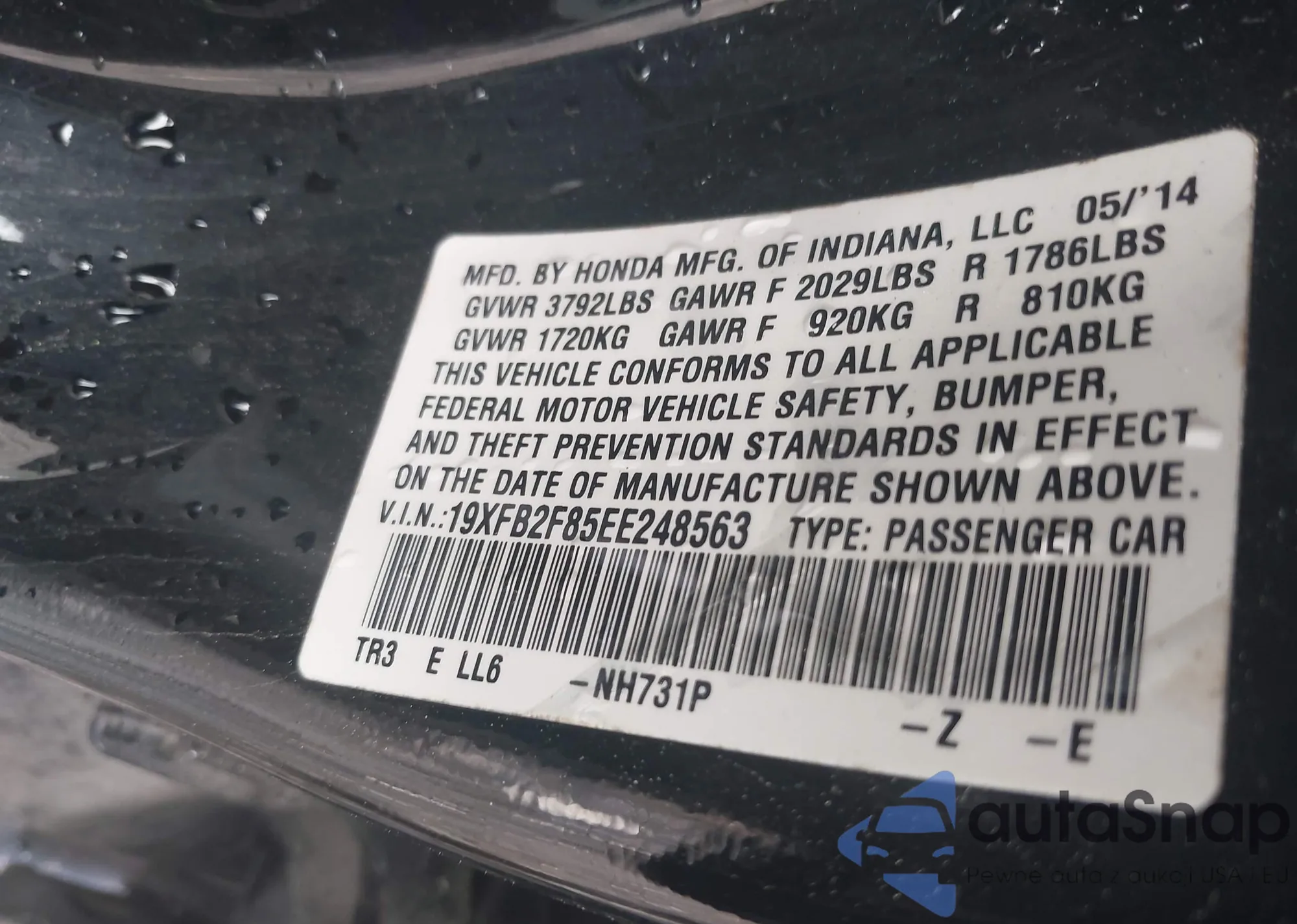 • VIN 19XFB2F85EE248563