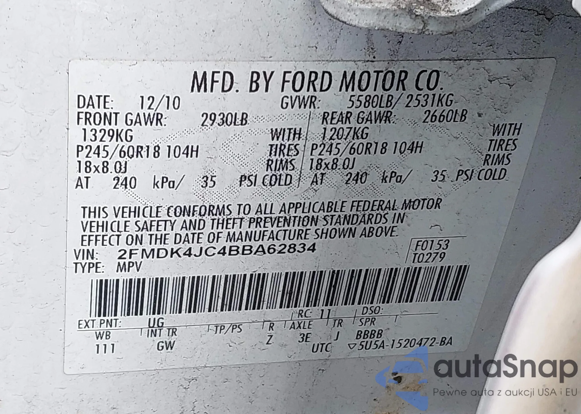 LOT: 42226637 VIN: JM1BPBMM4K1130776