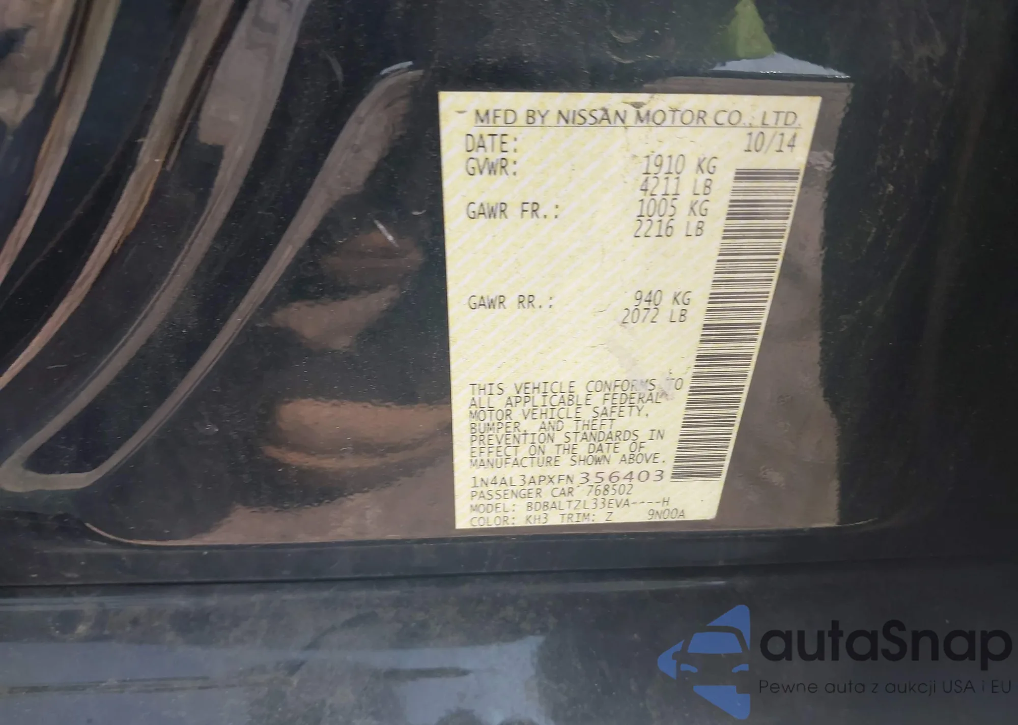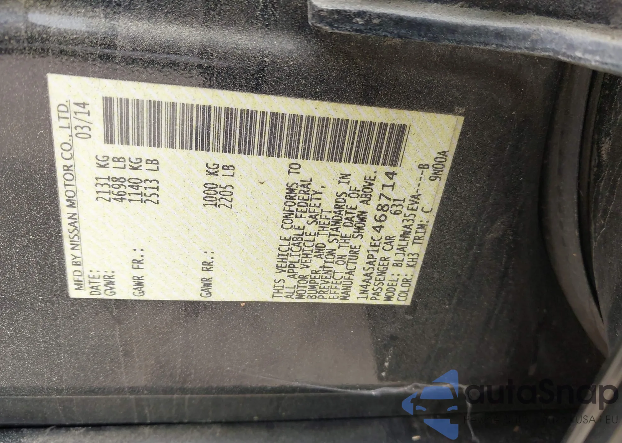 • VIN 1N4AA5AP1EC468714
