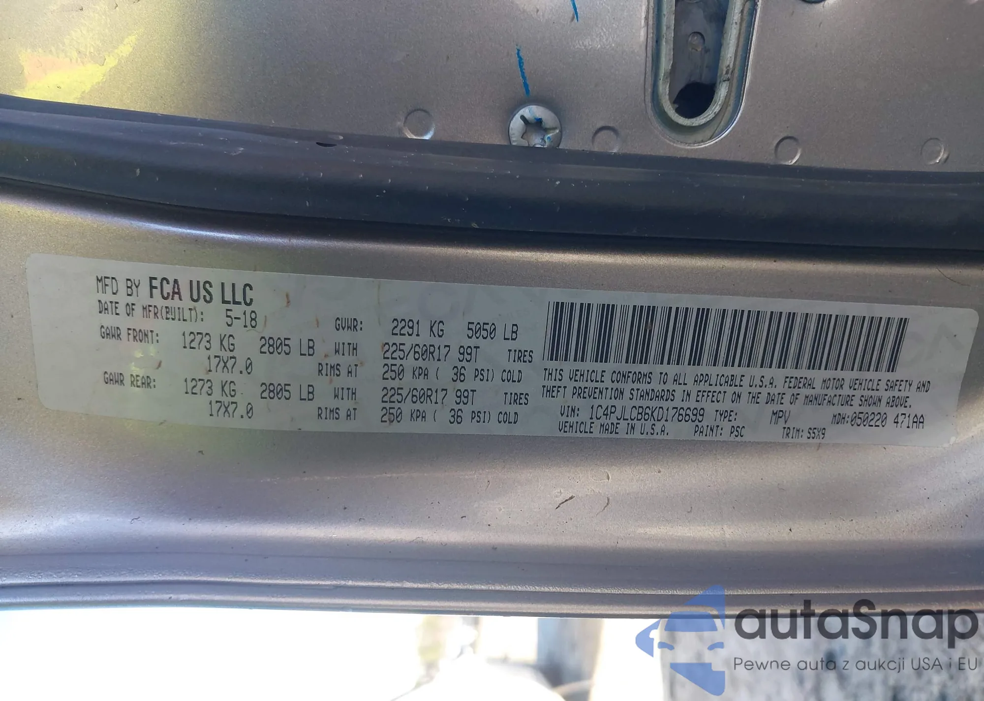• VIN 1C4PJLCB6KD176699