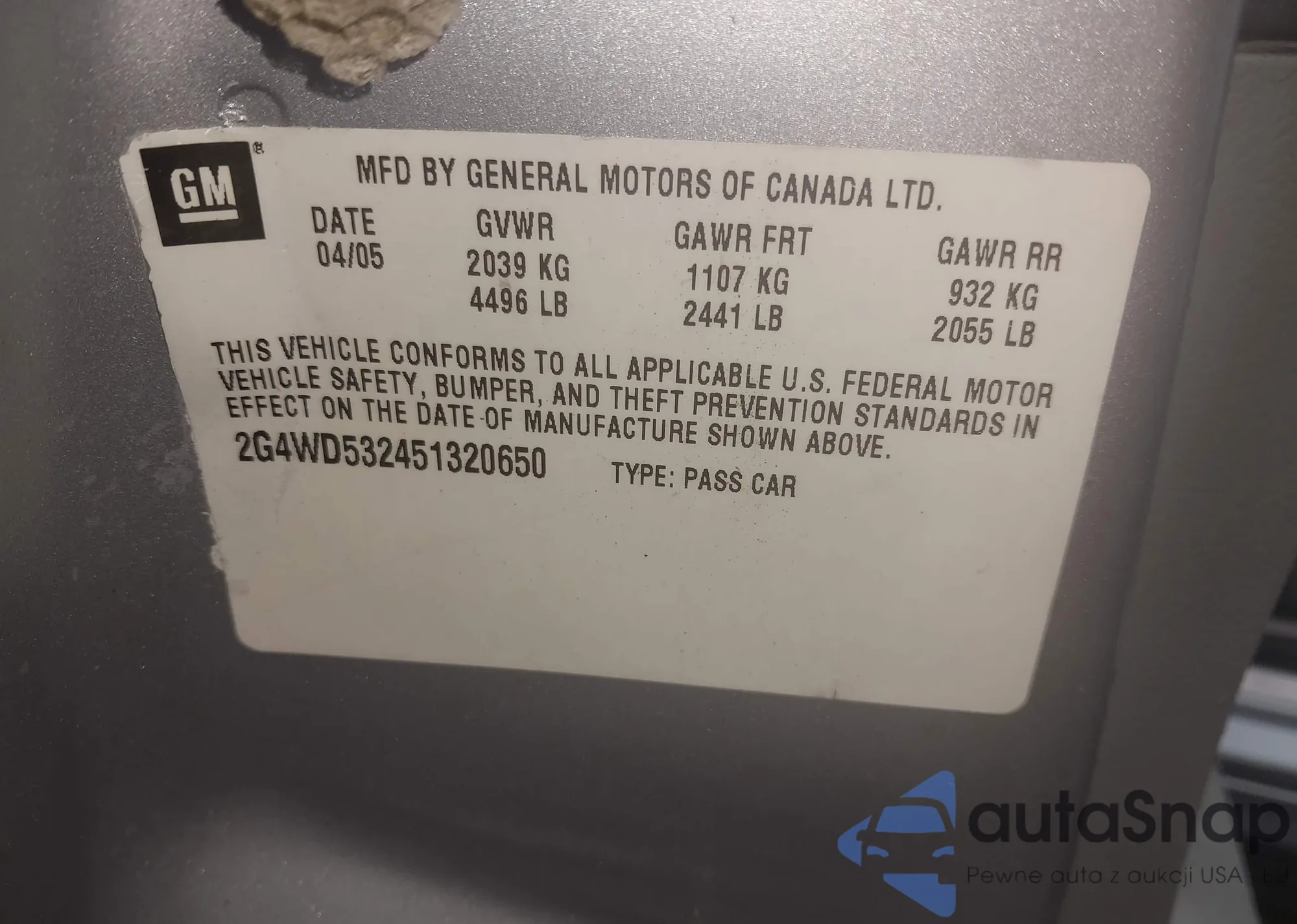 LOT: 42293121 VIN: 2G4WD532451320650