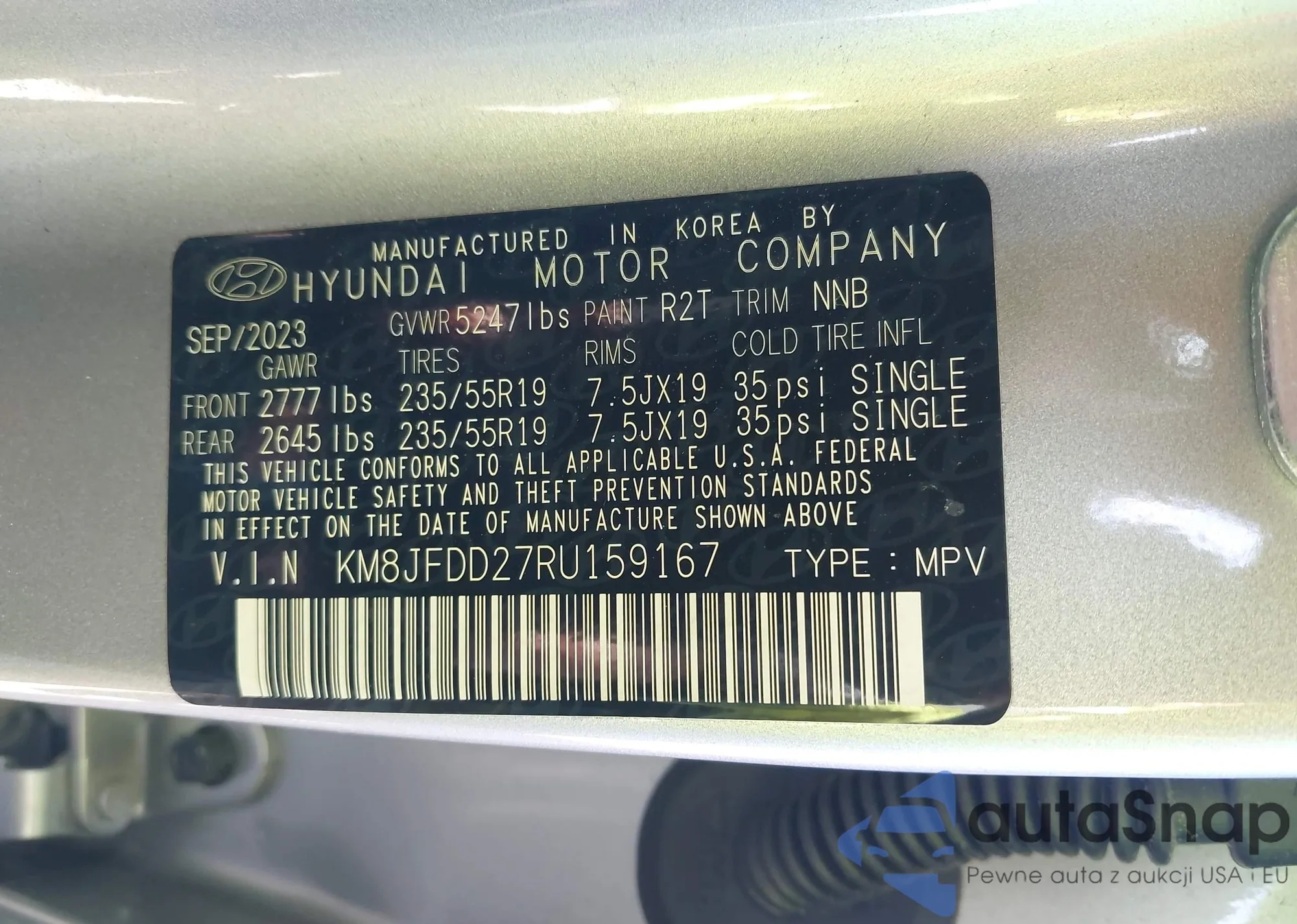 • VIN KM8JFDD27RU159167