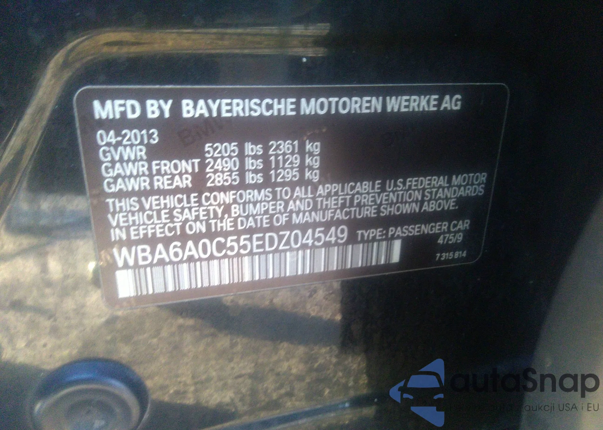 • VIN WBA6A0C55EDZ04549