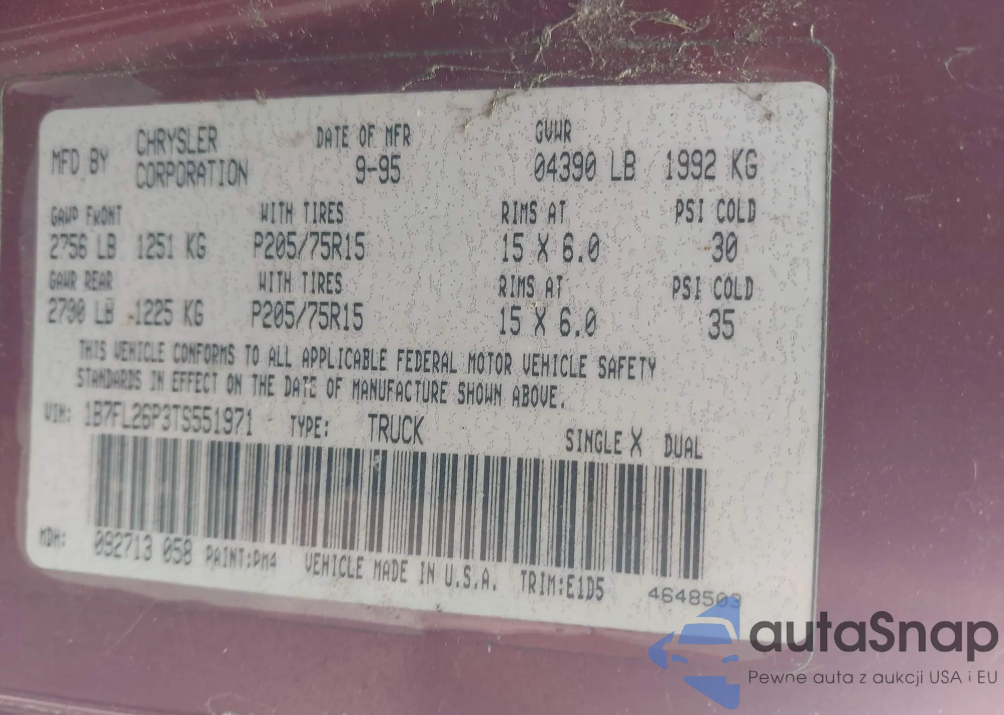• VIN 1FTDF1827VND24519