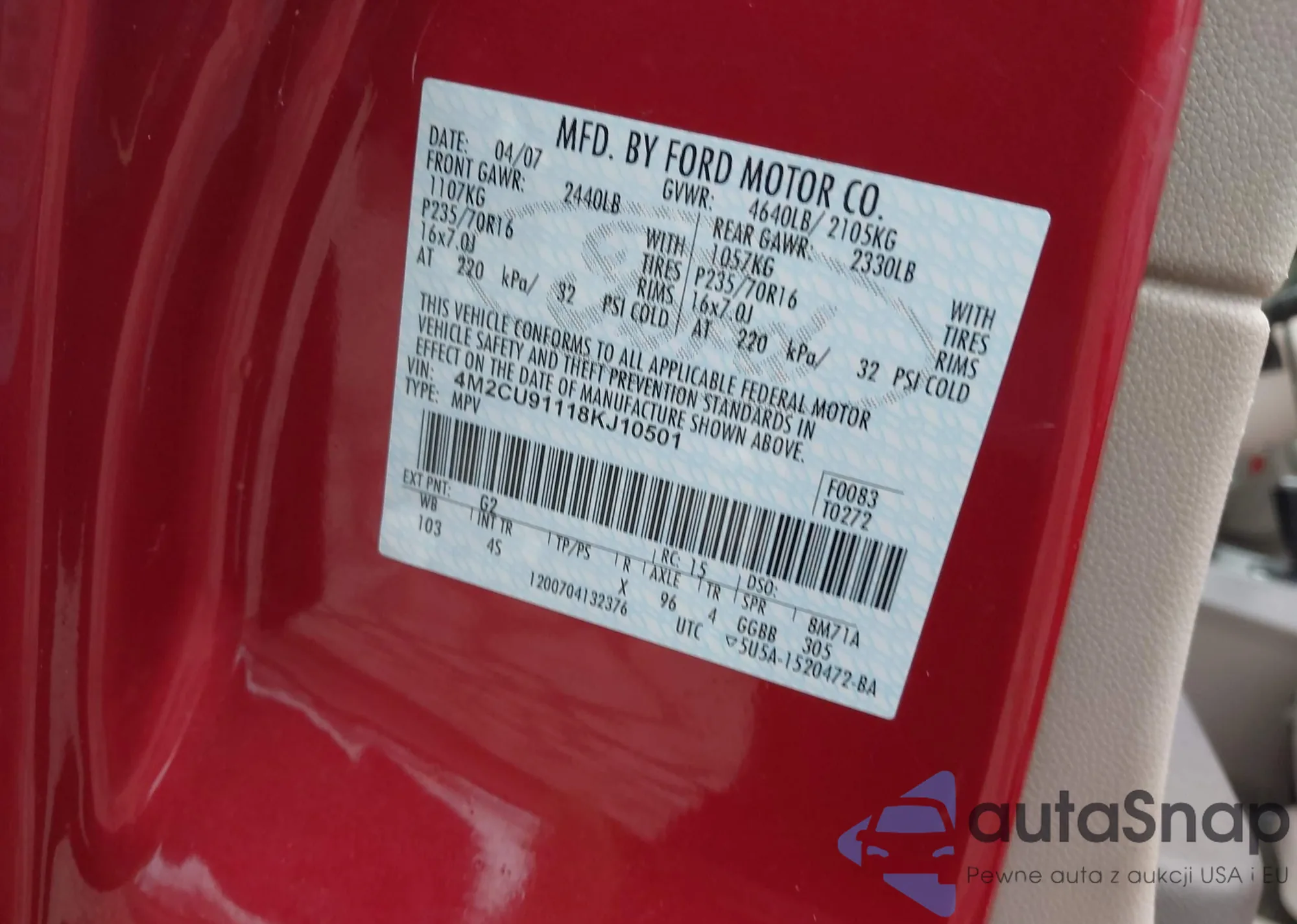 • VIN 4M2CU91118KJ10501