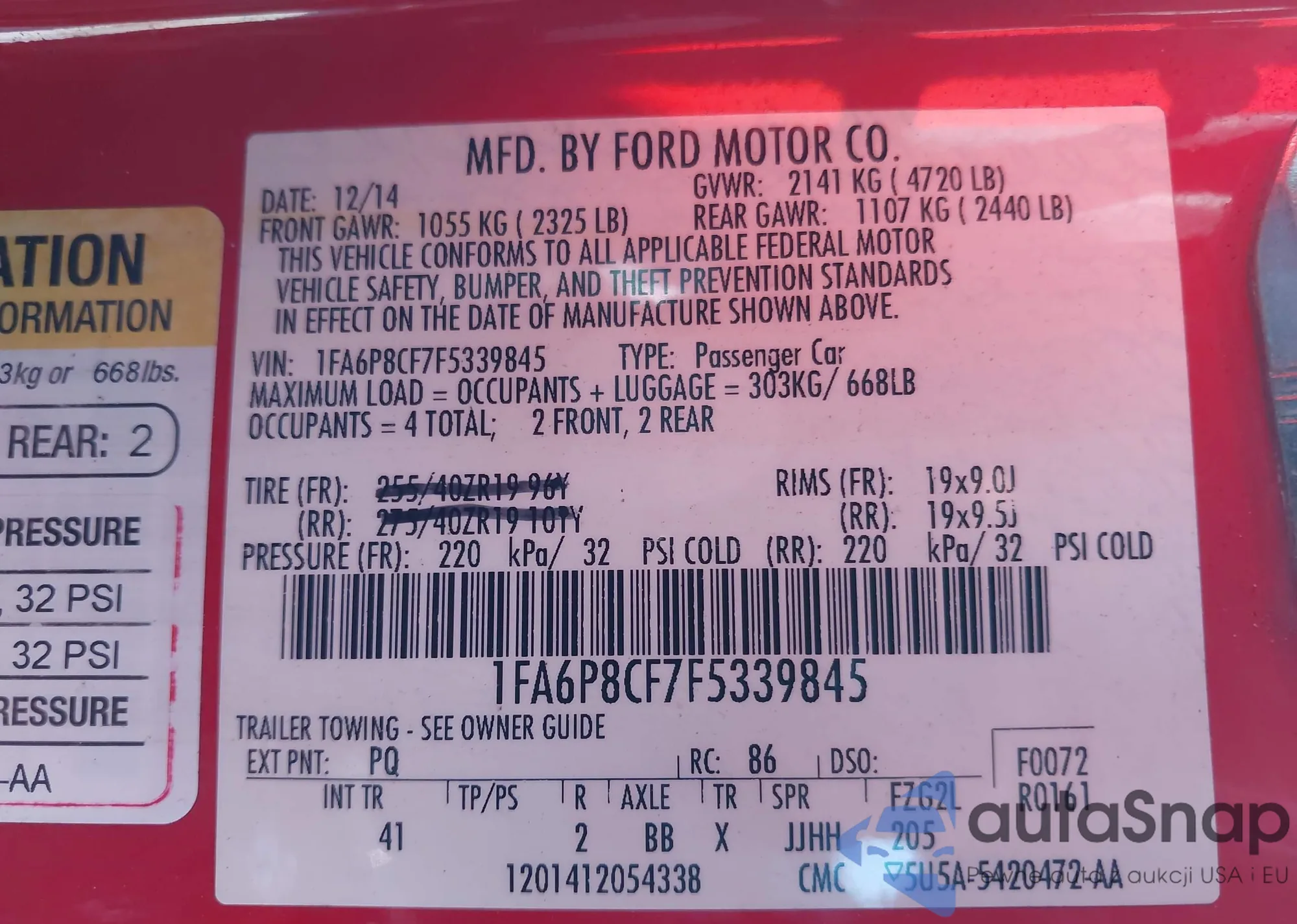 • VIN 1FA6P8CF7F5339845