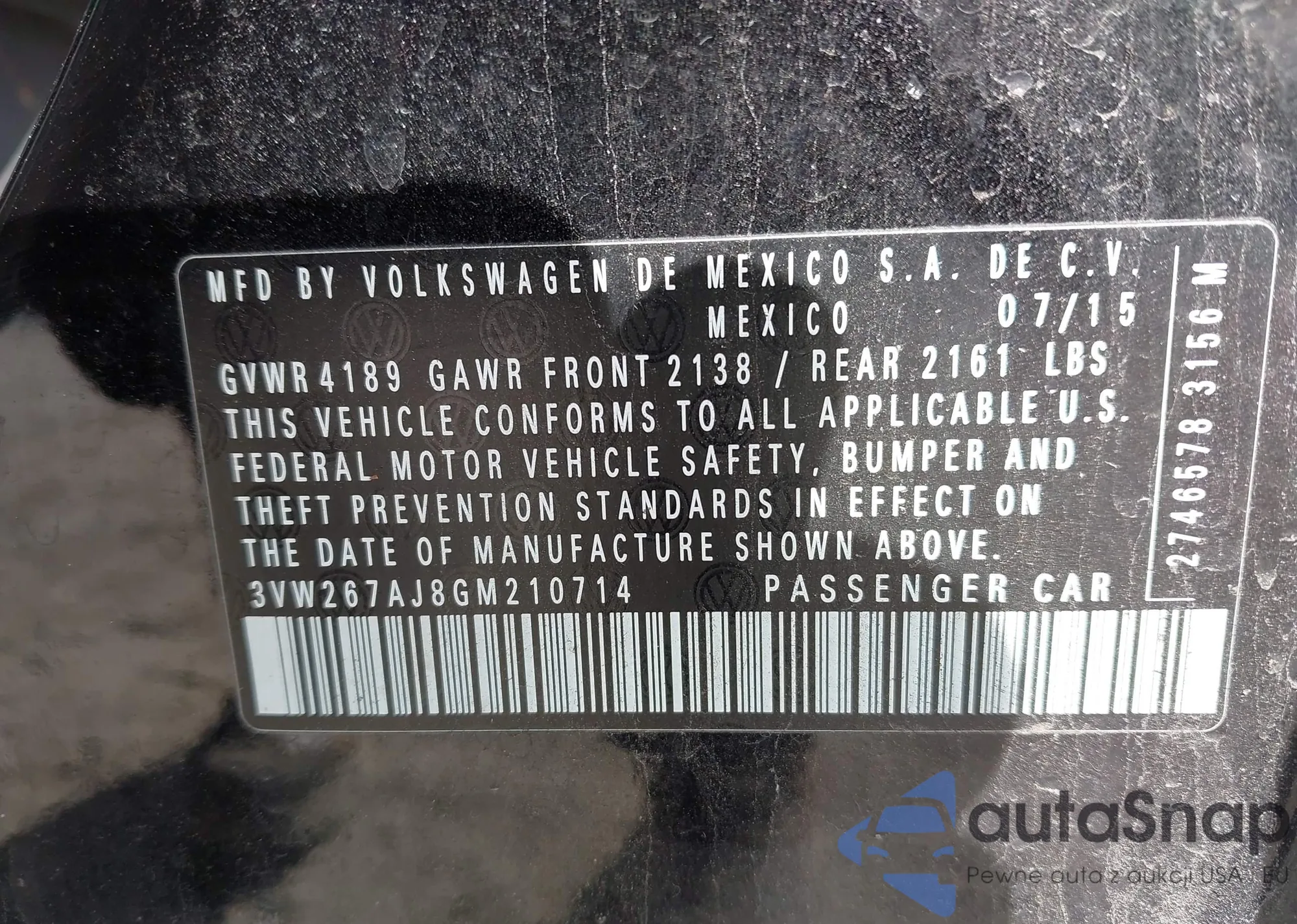• VIN 3VW267AJ8GM210714