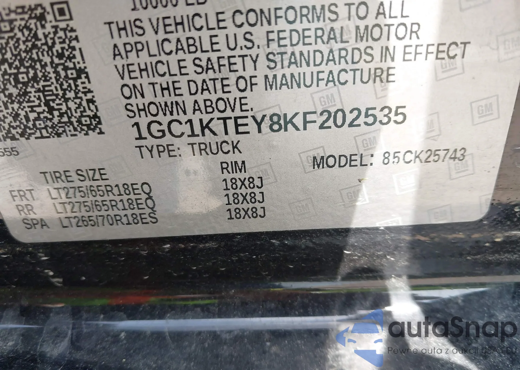 • VIN 1GC1KTEY8KF202535