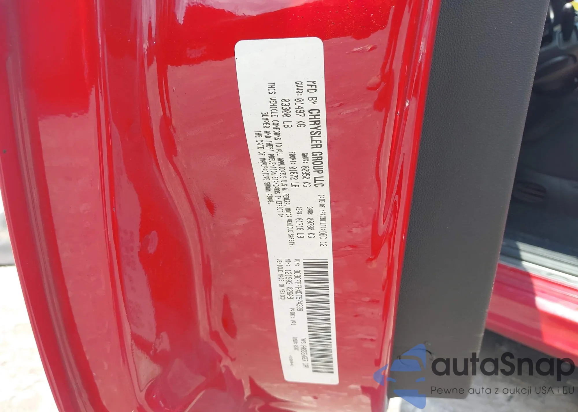 • VIN 3C3CFFFHXDT574338