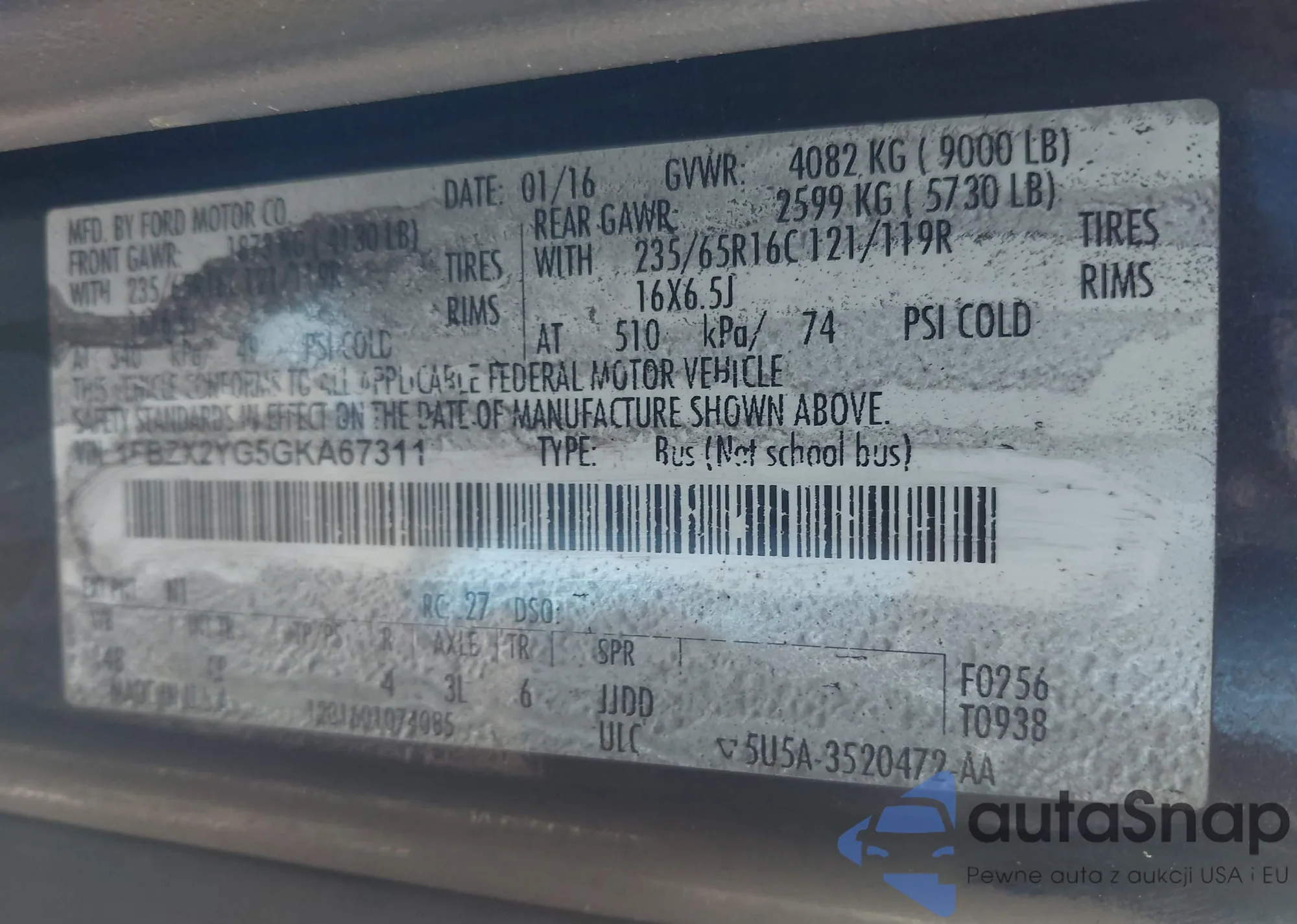 • VIN 1FBZX2YG5GKA67311