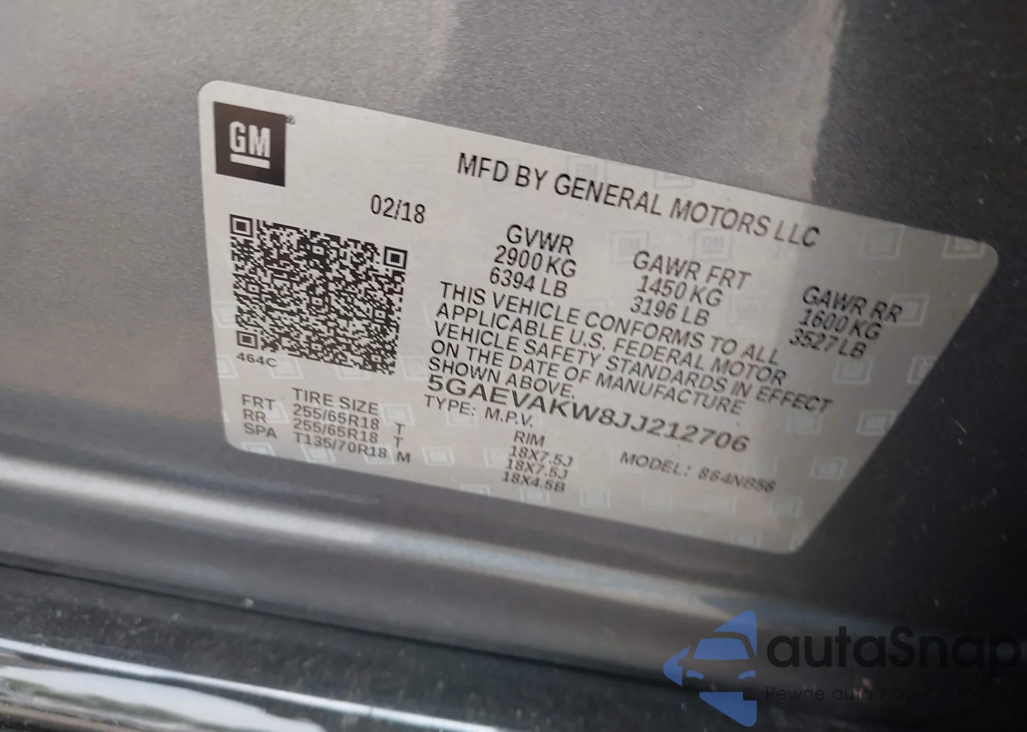LOT: 42442559 VIN: 5GAEVAKW8JJ212706