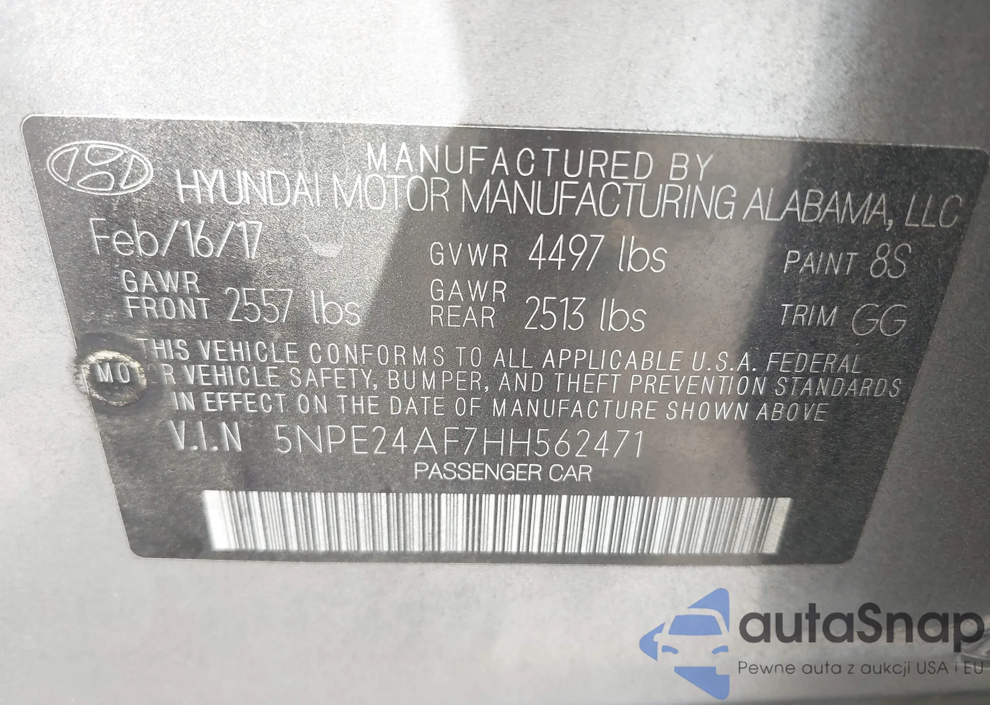 • VIN 5NPE24AF7HH562471