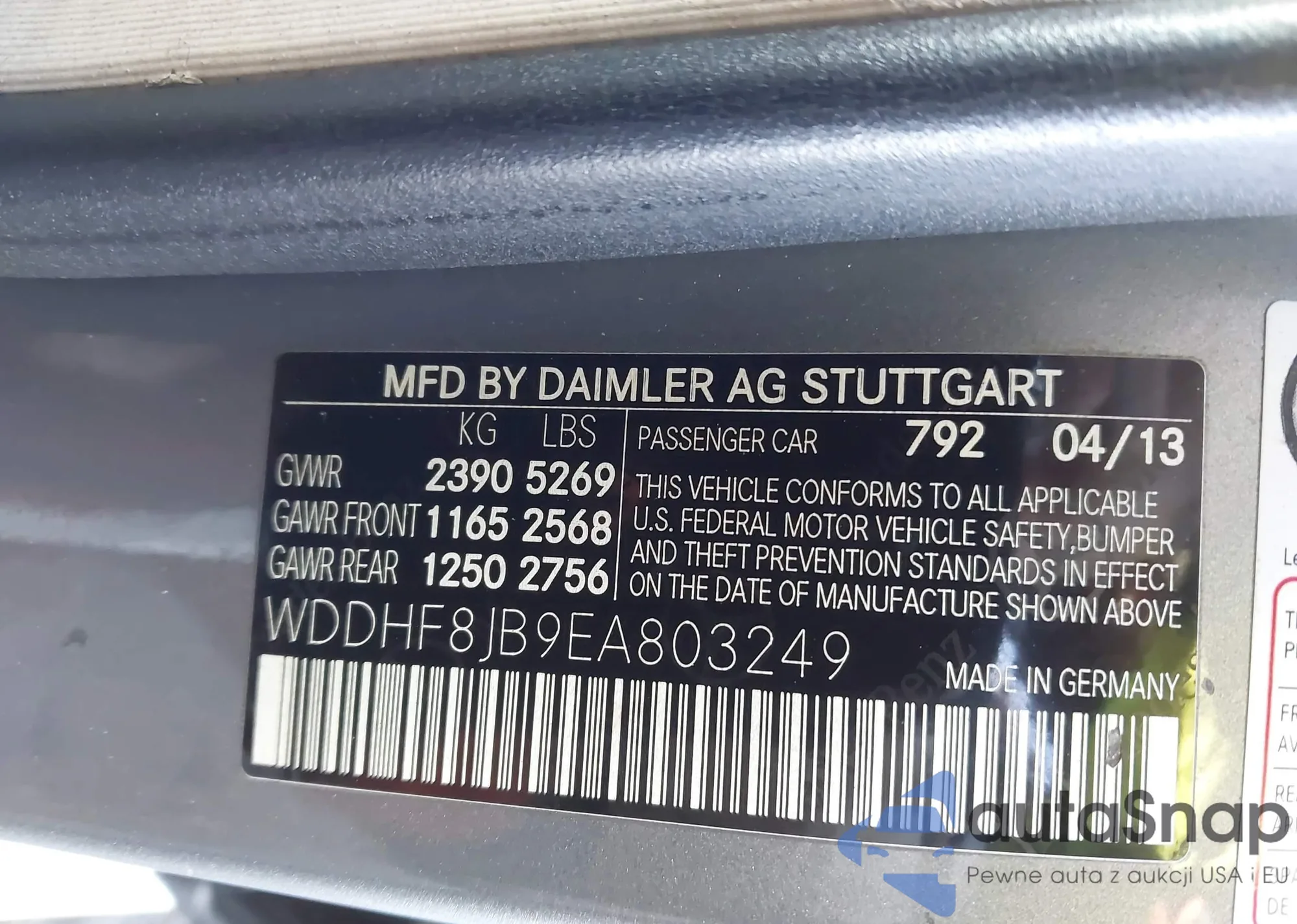 • VIN WDDGJ8JB5DG089402