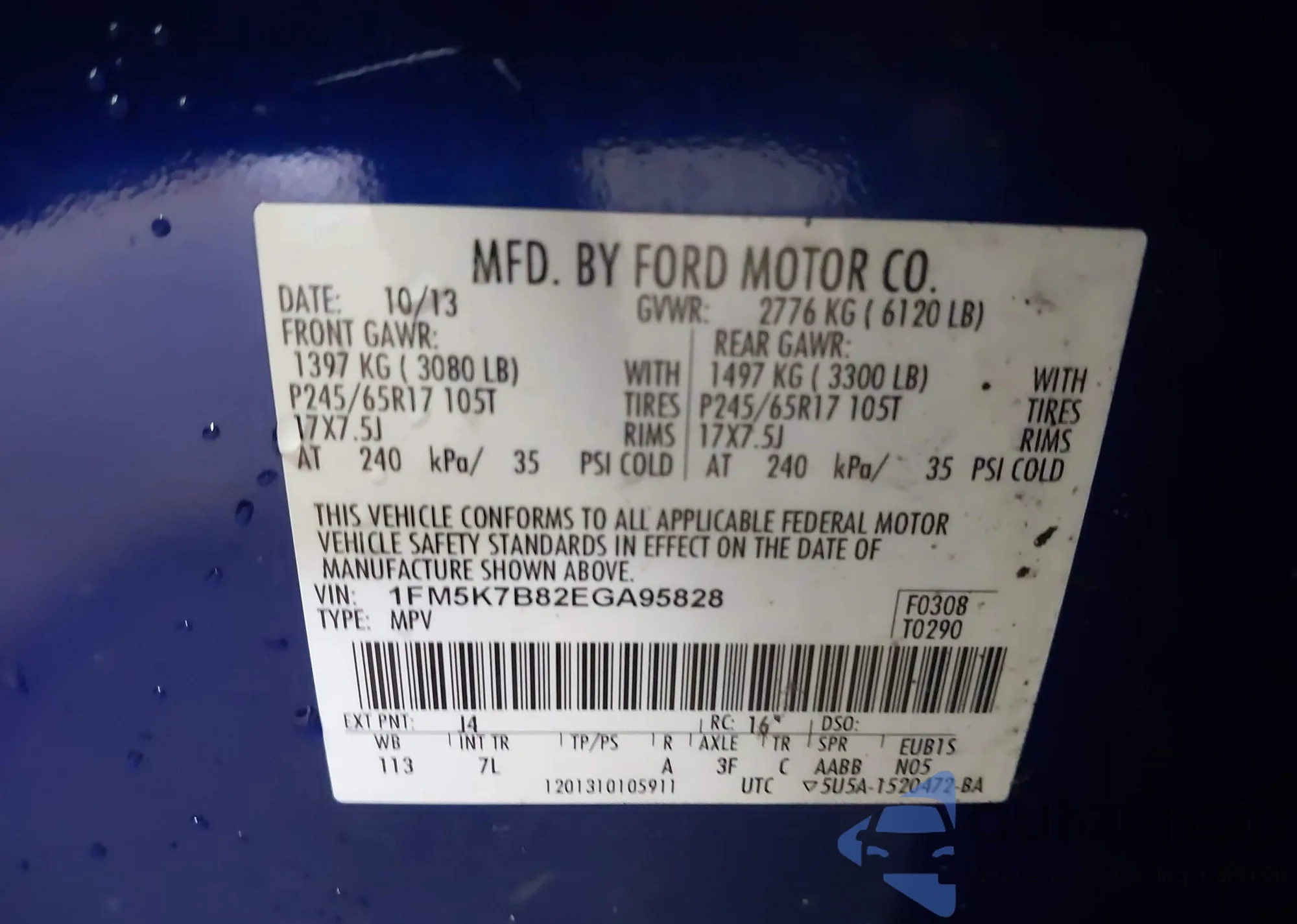 • VIN 1FM5K7B82EGA95828