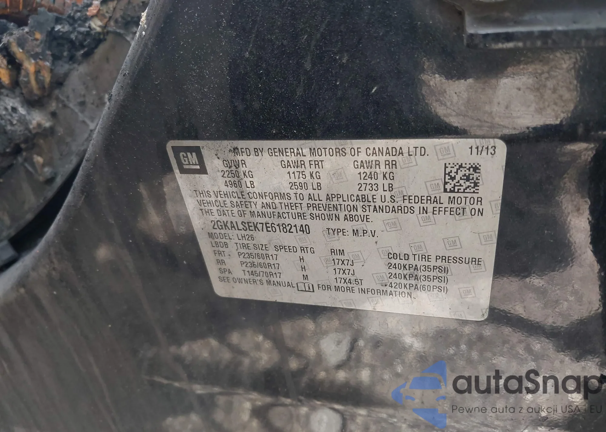LOT: 42103865 VIN: 2GKALSEK7E6182140