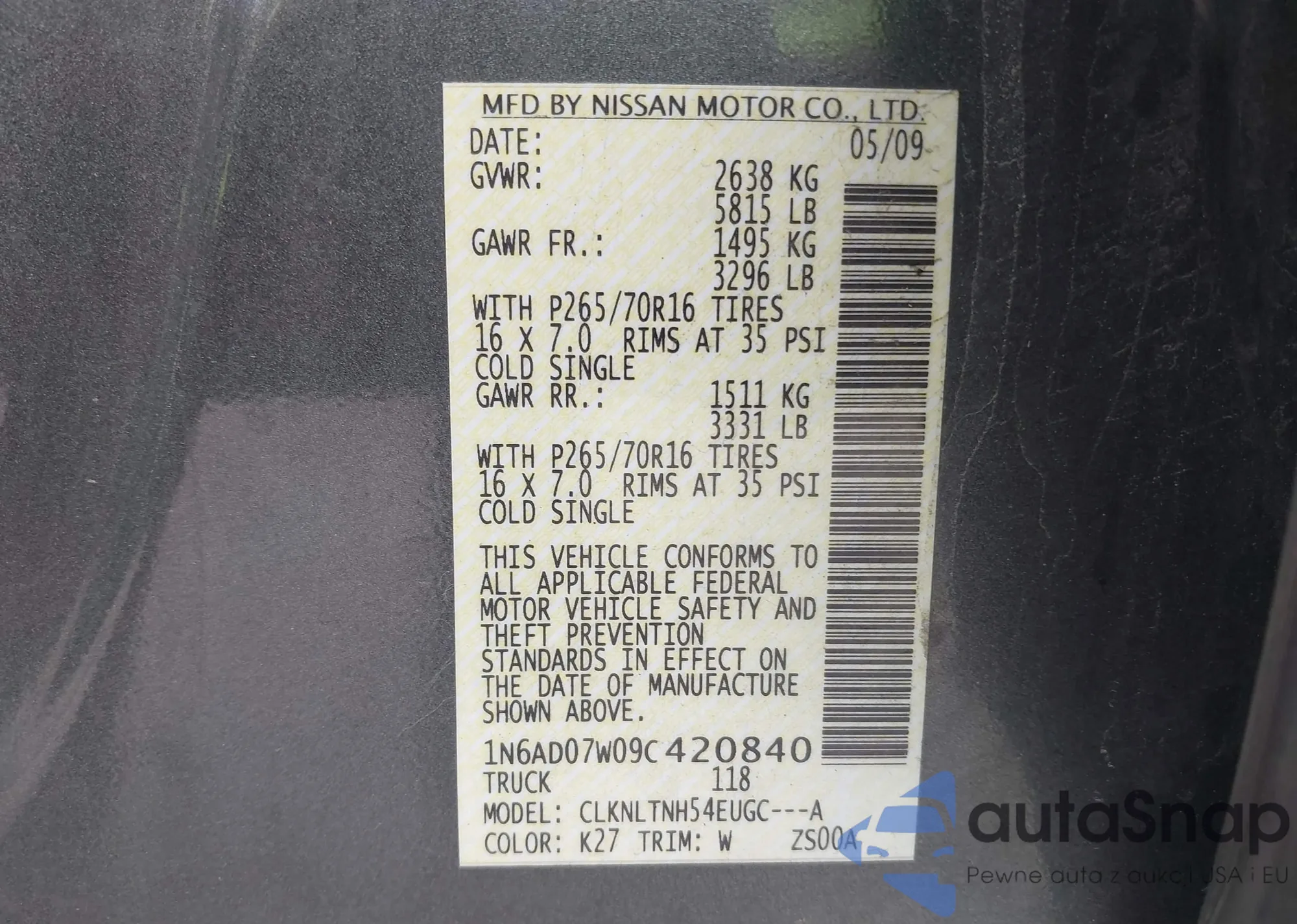 • VIN 1N6AD07W09C420840