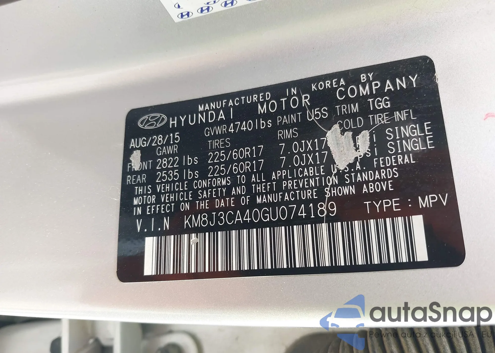• VIN KM8J3CA40GU074189