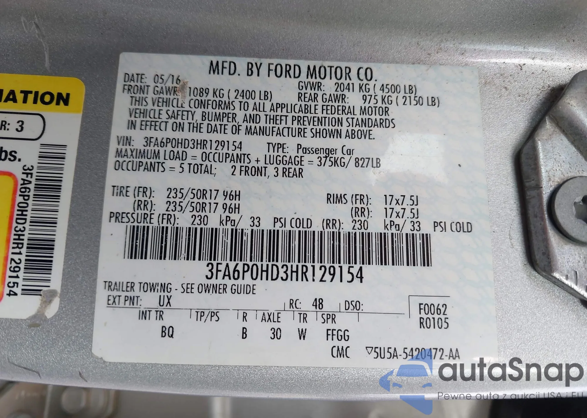 • VIN 3FA6P0HD3HR129154