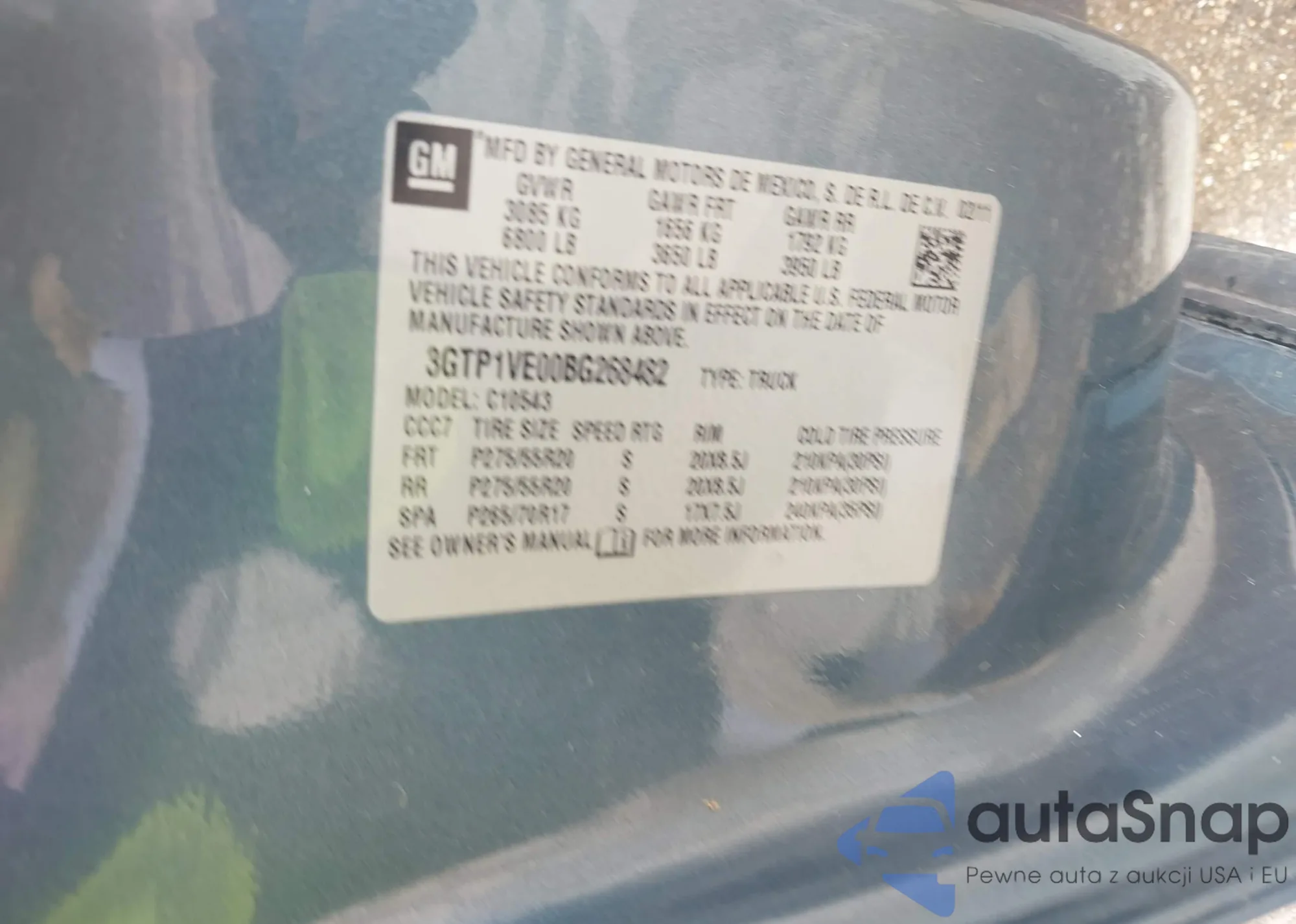 • VIN 3GTP1VE00BG268482