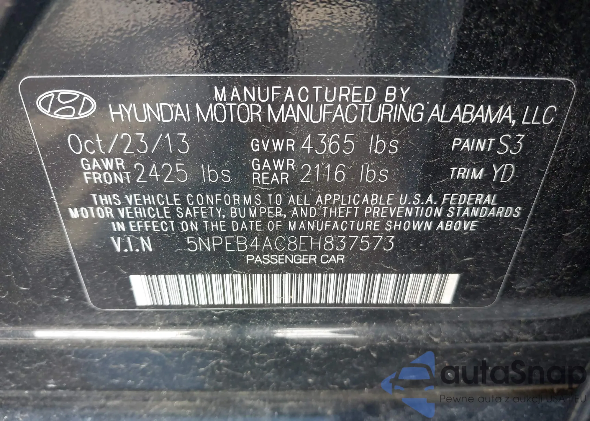• VIN 5NPEB4AC8EH837573
