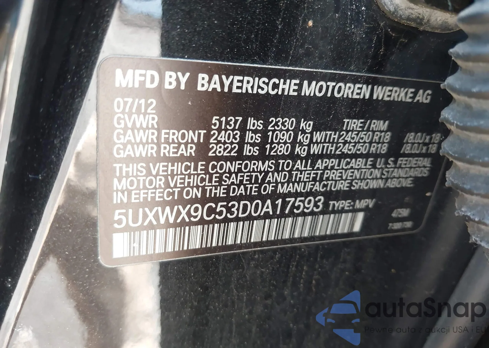 • VIN 5UXWX9C53D0A17593