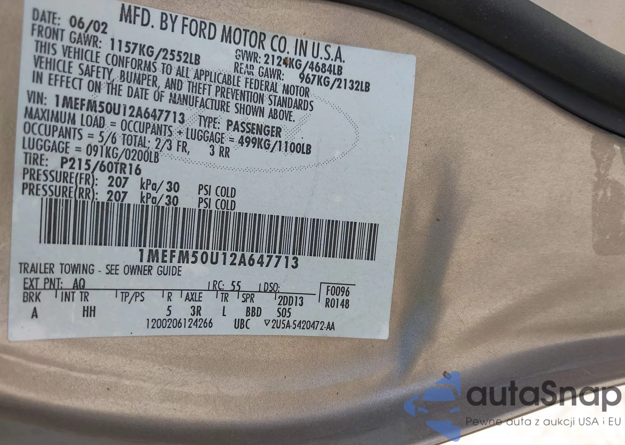 LOT: 42510188 VIN: 1MEFM50U12A647713