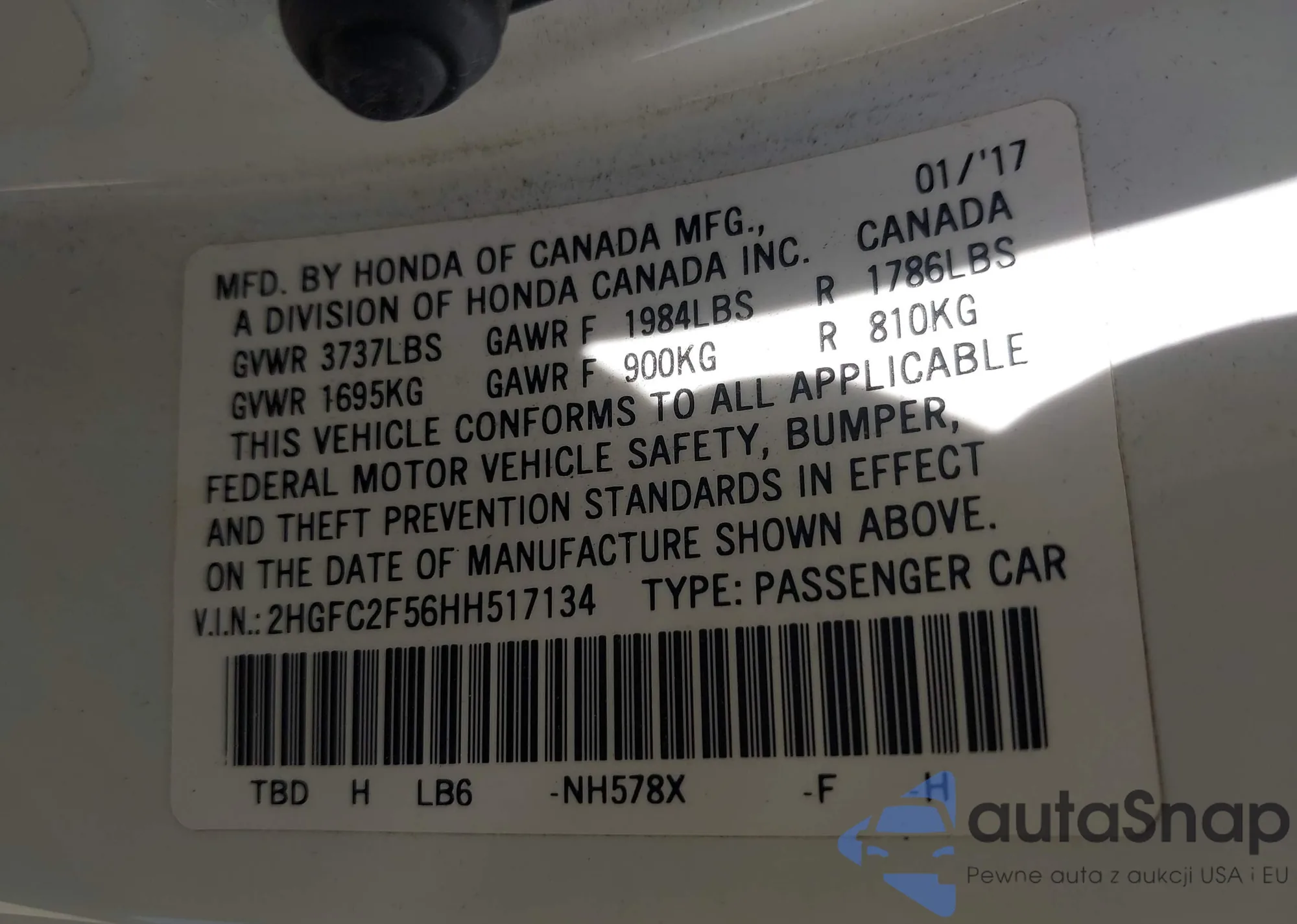 • VIN 2HGFC2F56HH517134