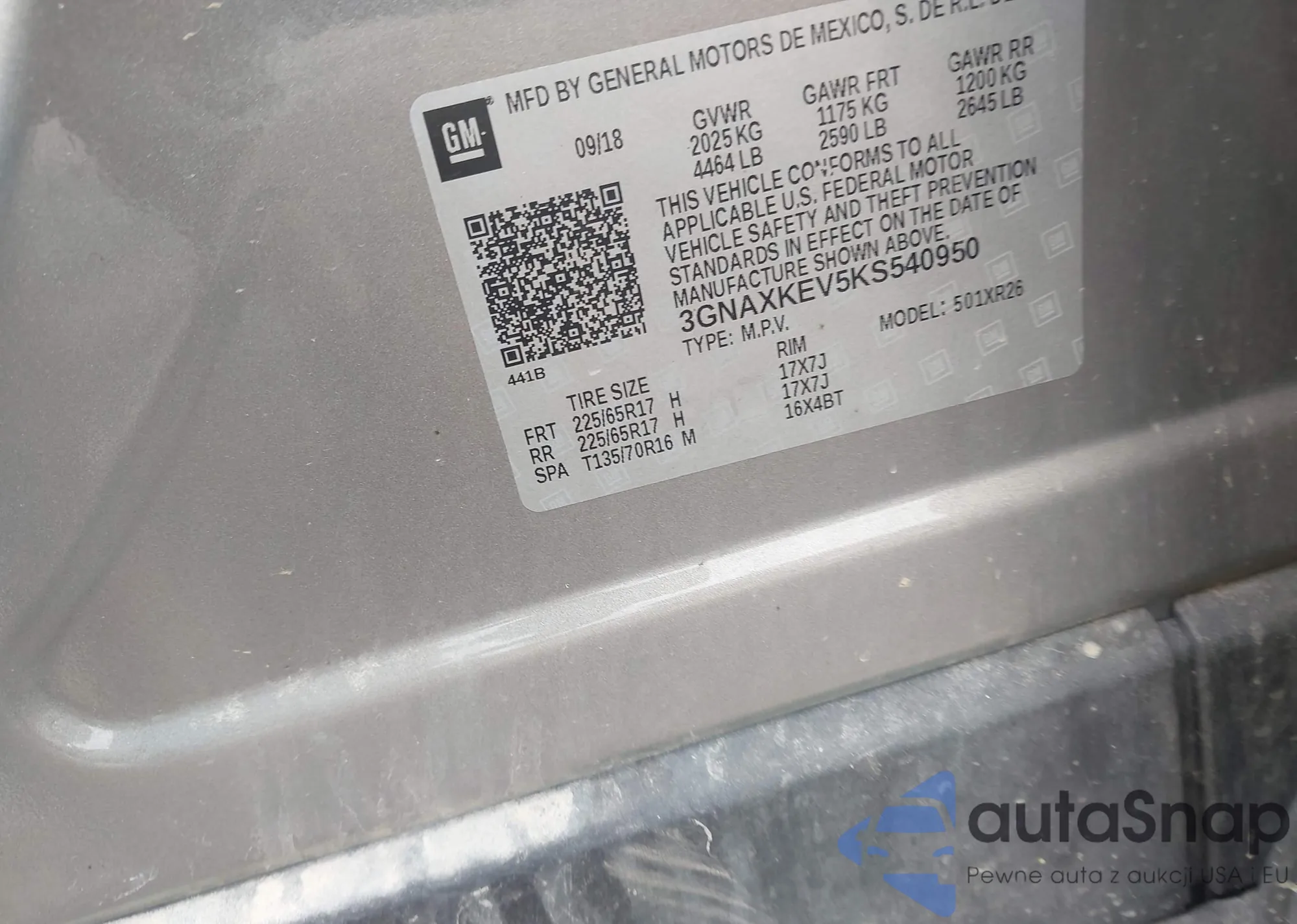 LOT: 42519338 VIN: 3GNAXKEV5KS540950