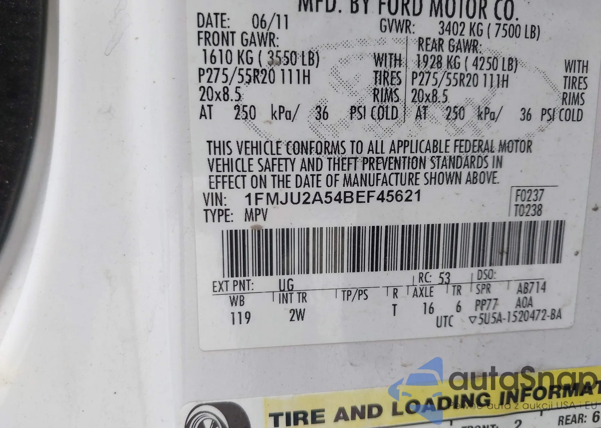 LOT: 42524818 VIN: 1FMJU2A54BEF45621