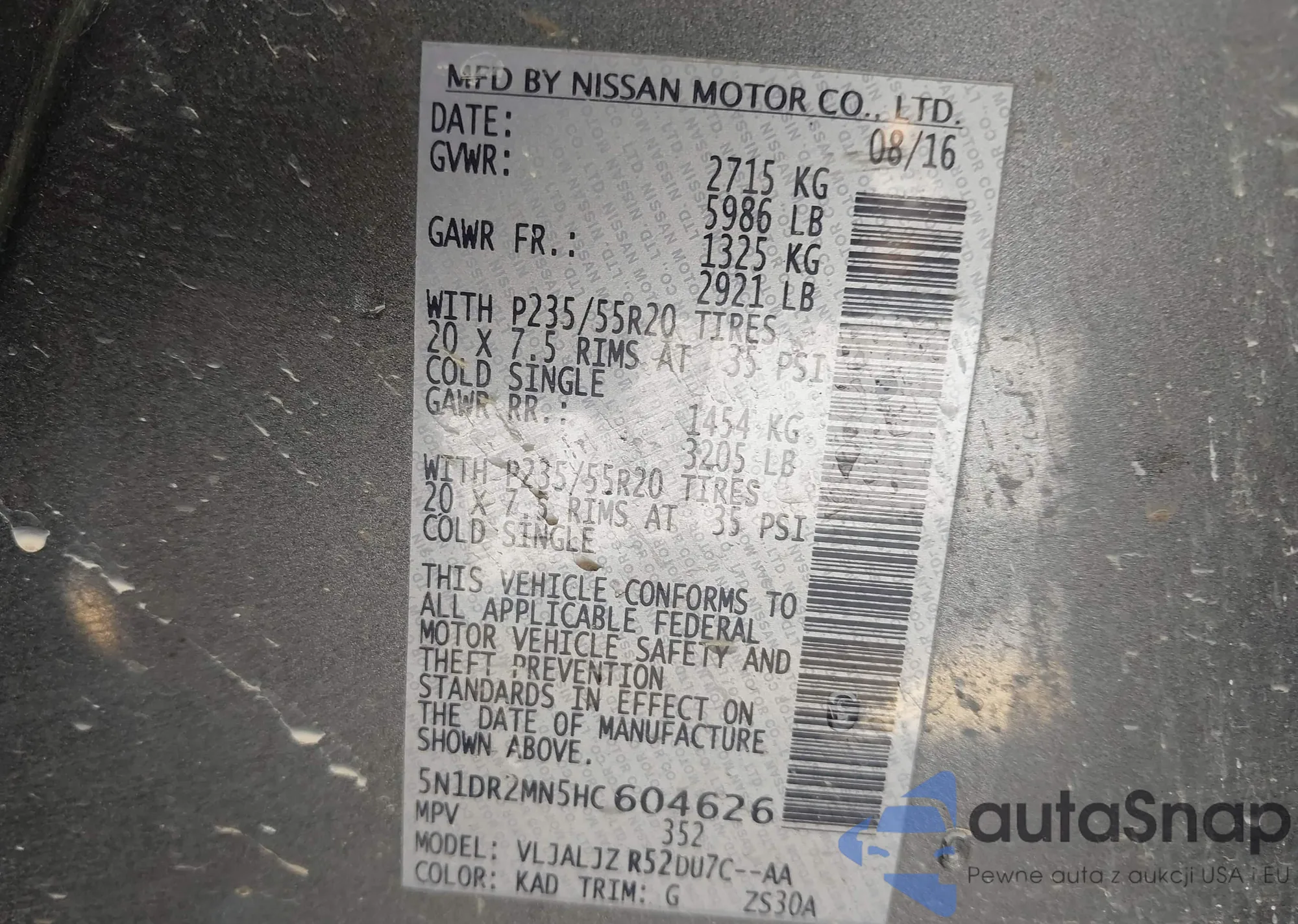 • VIN 5N1DR2MN5HC604626