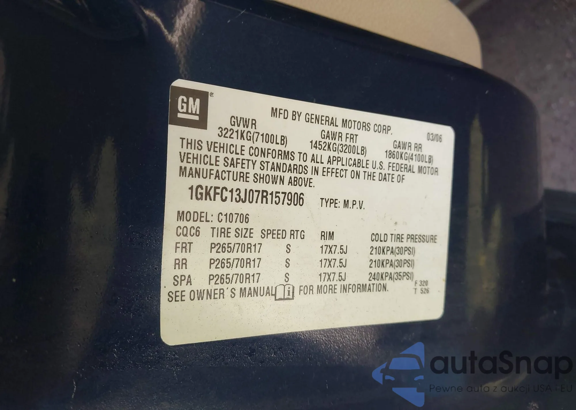 LOT: 42534389 VIN: 1GKFC13J07R157906