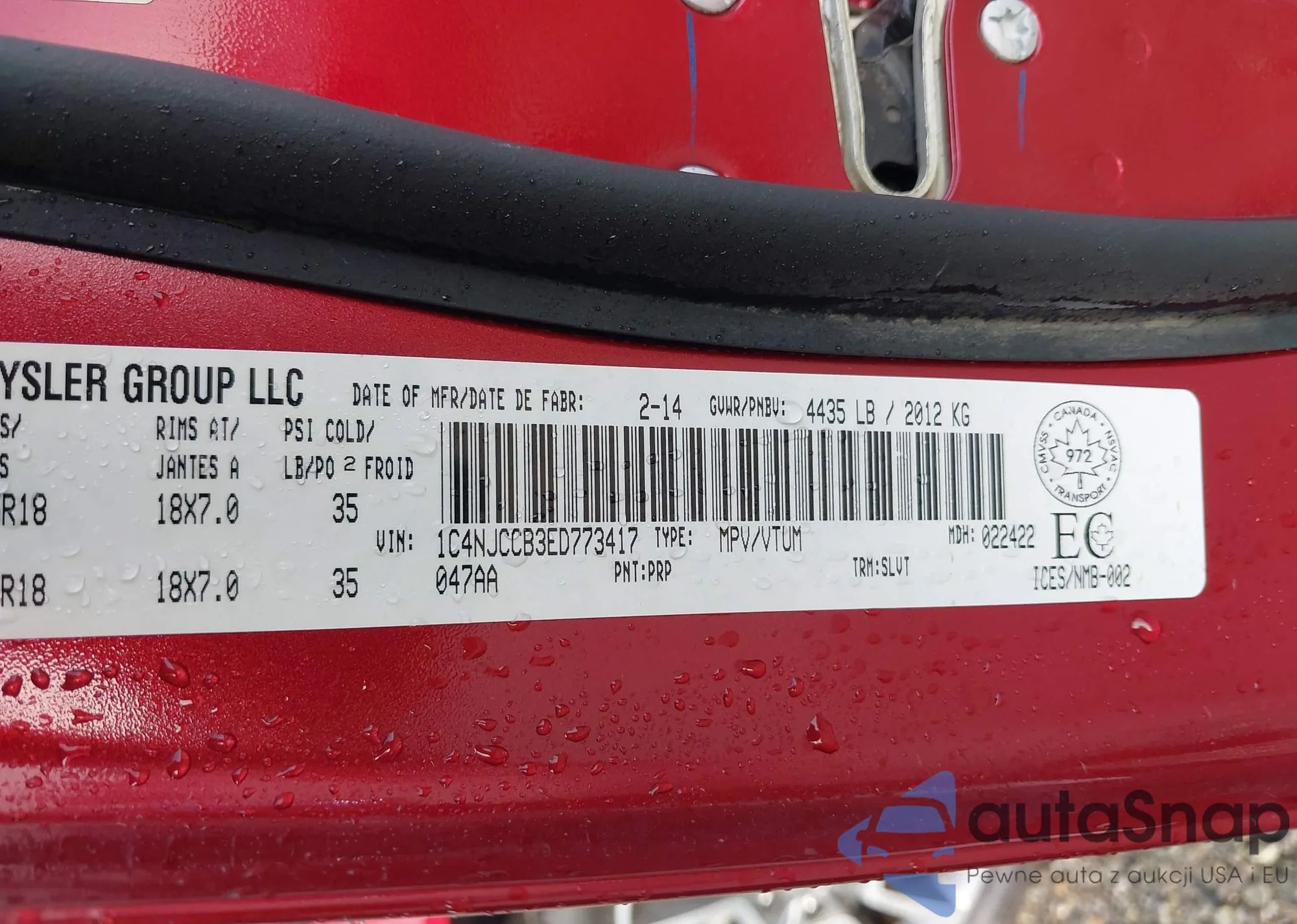 • VIN 1C4NJCCB3ED773417
