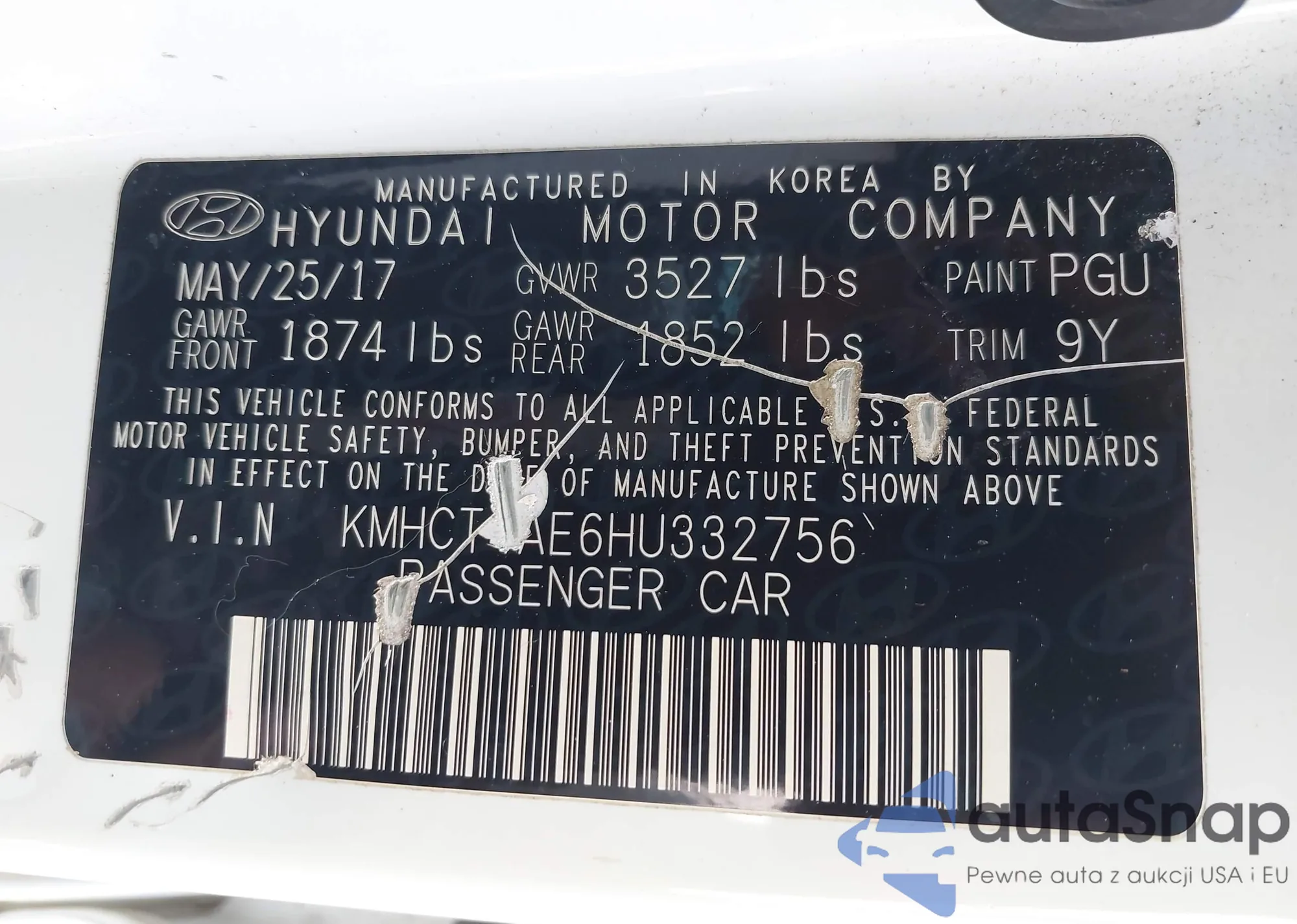LOT: 42817505 VIN: KNDPB3A26C7296289