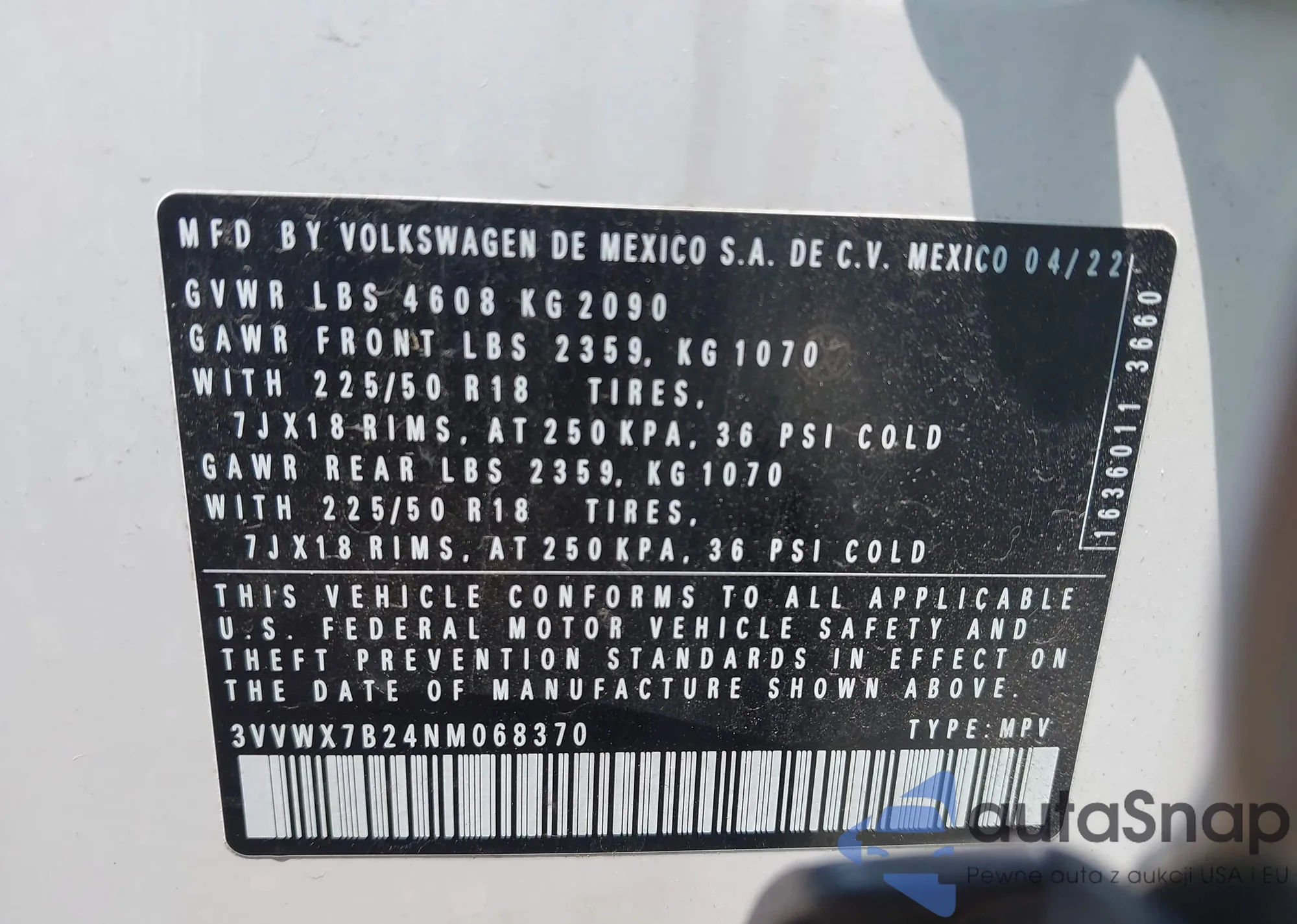 • VIN 3VVWX7B24NM068370