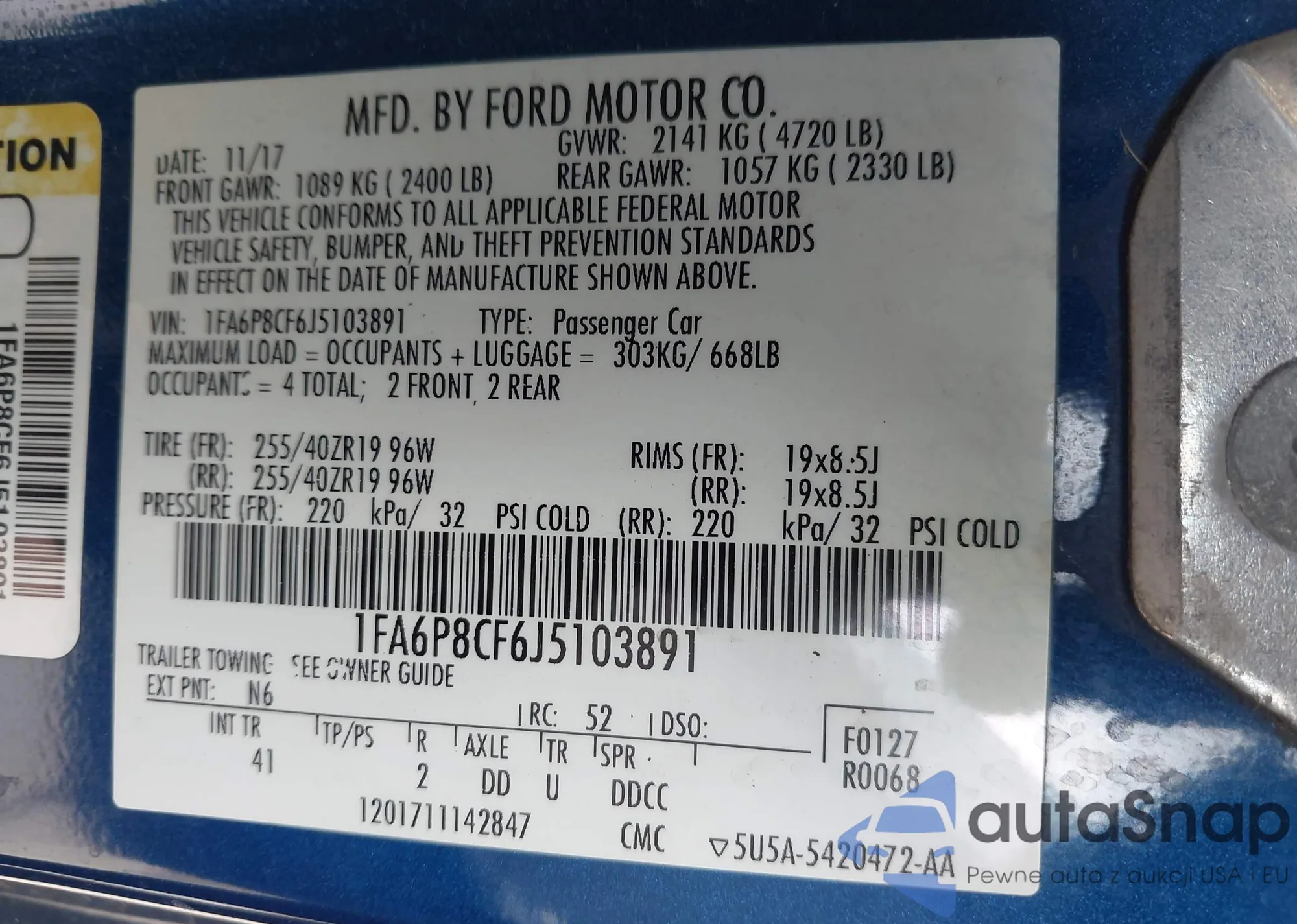 • VIN 1FA6P8CF6J5103891