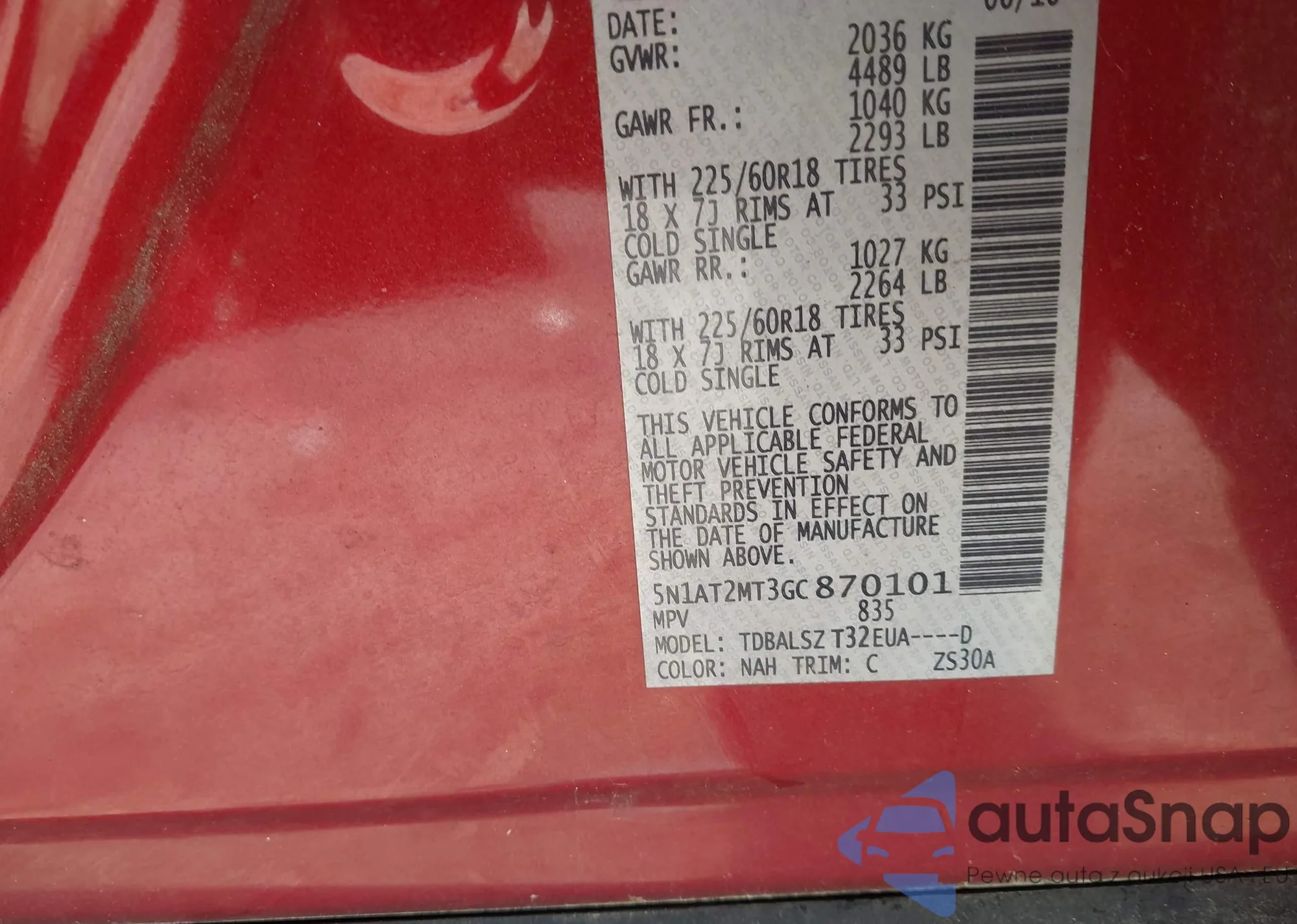 LOT: 42137721 VIN: 5N1AT2MT3GC870101