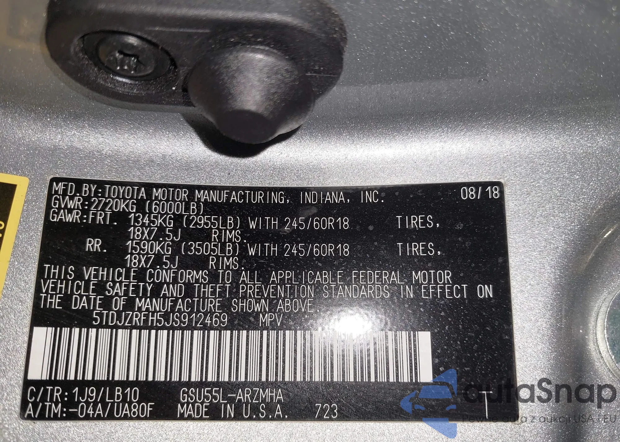 LOT: 42332840 VIN: 5TDJZRFH5JS912469