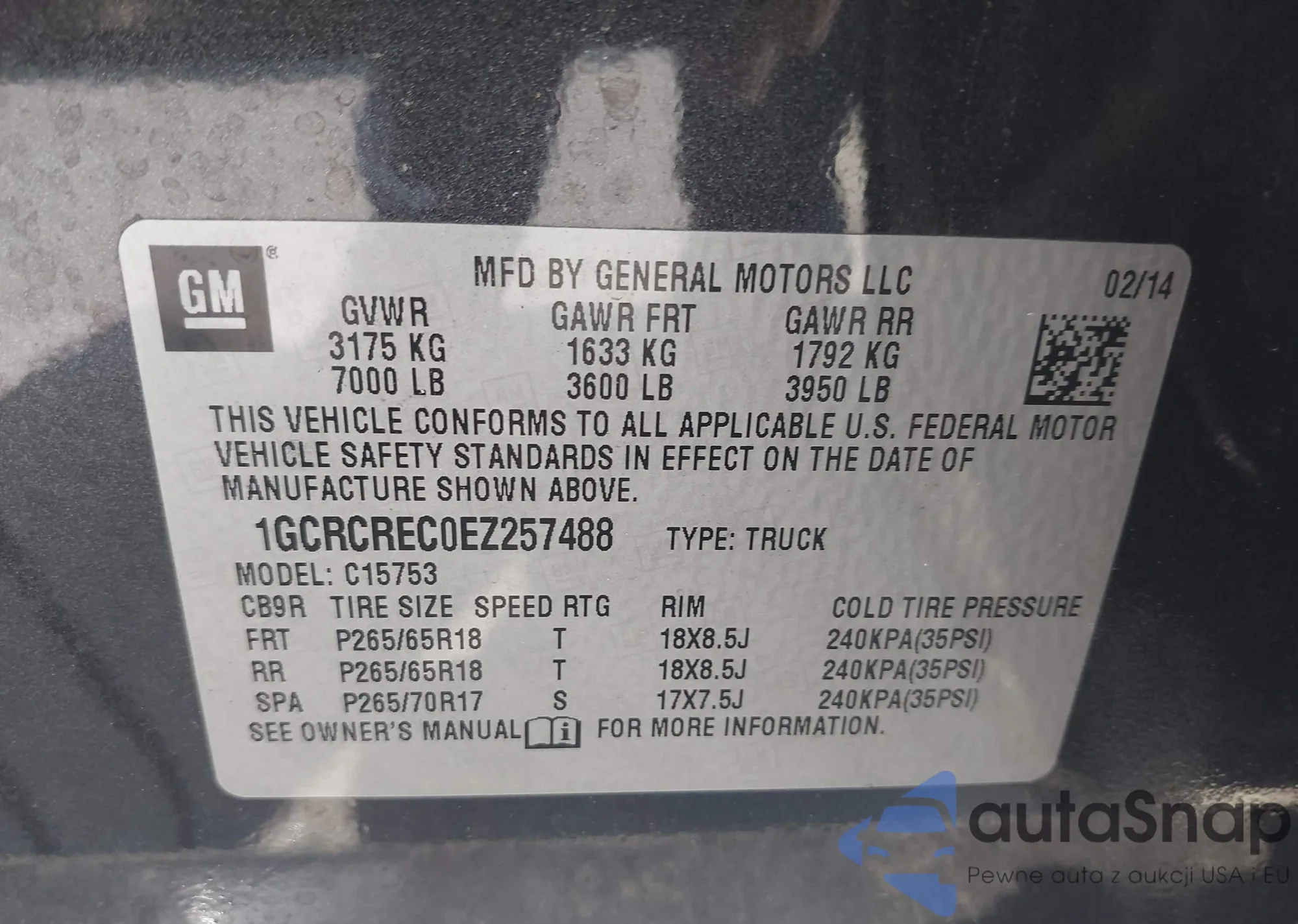 LOT: 42408379 VIN: 1GCRCREC0EZ257488