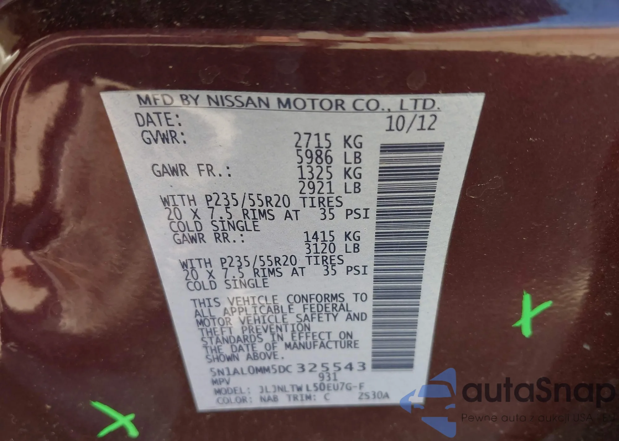 • VIN 5N1AL0MM5DC325543