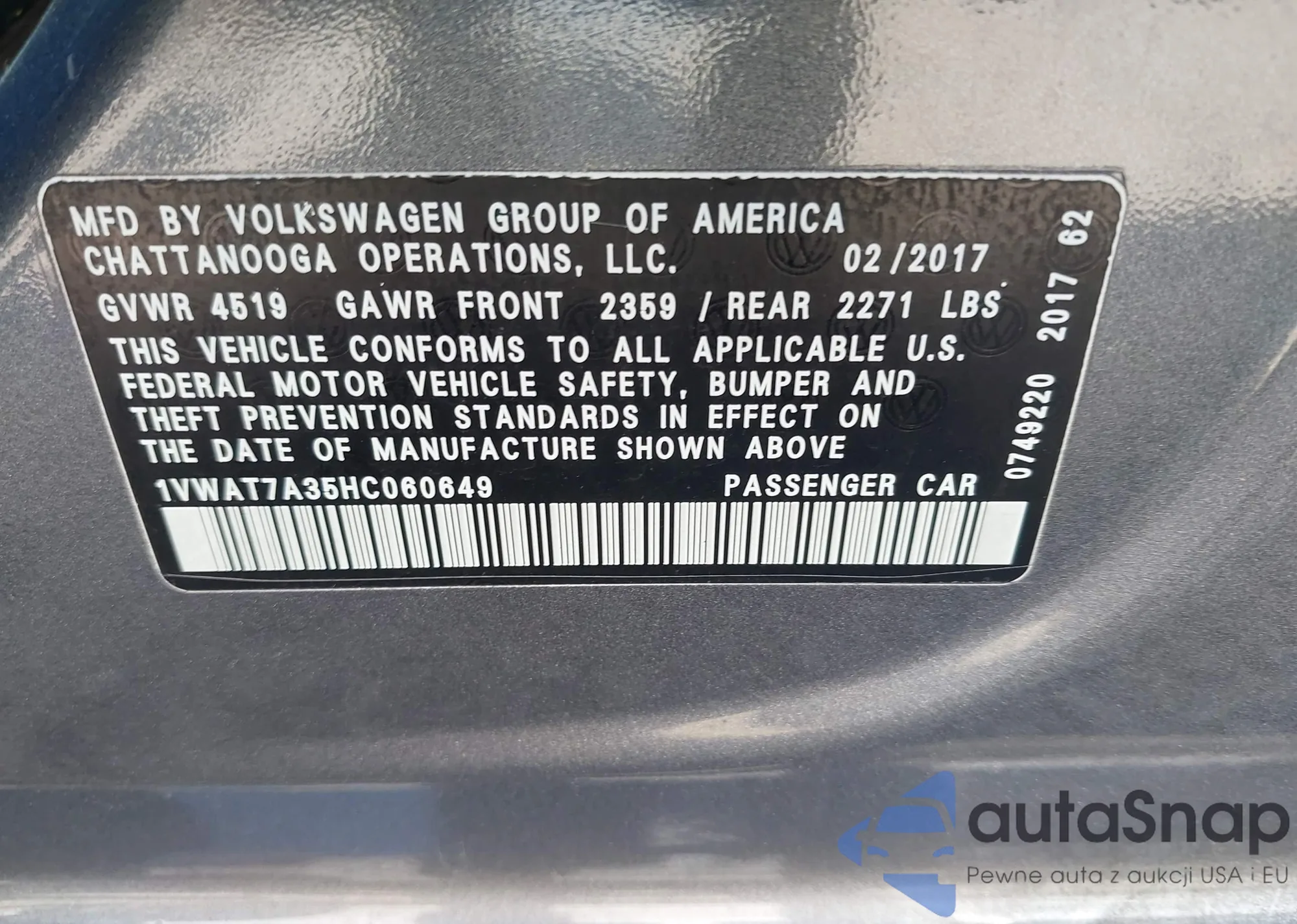 • VIN 1VWAT7A35HC060649