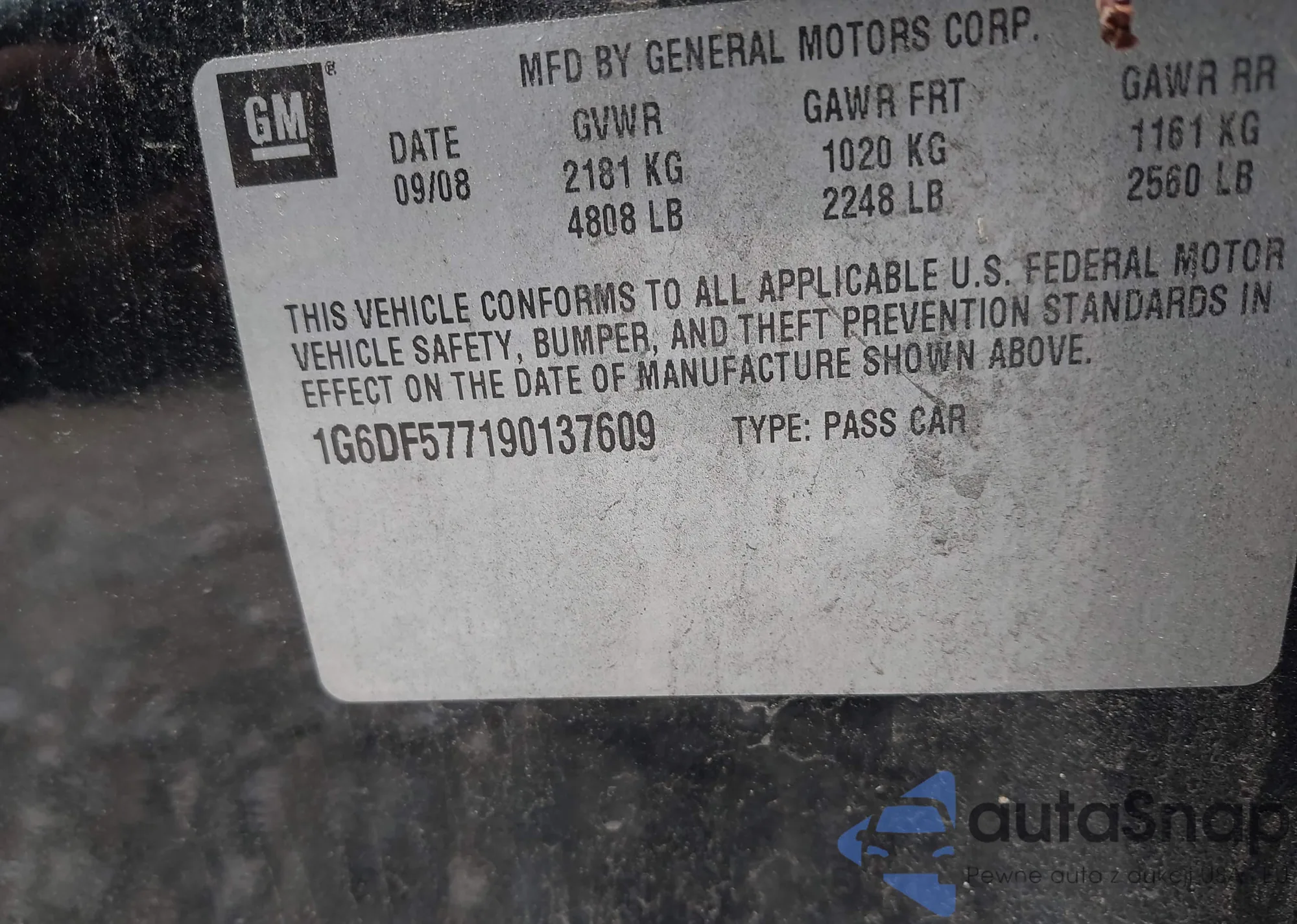 • VIN 1G6DF577190137609
