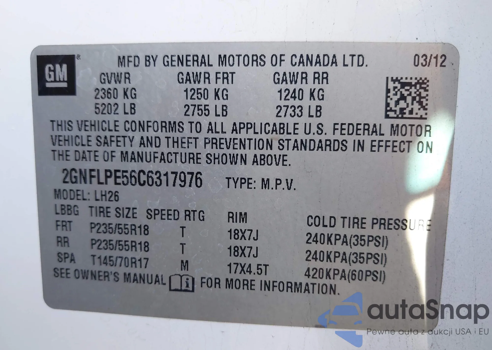 LOT: 42269859 VIN: 5TBBT48135S466507