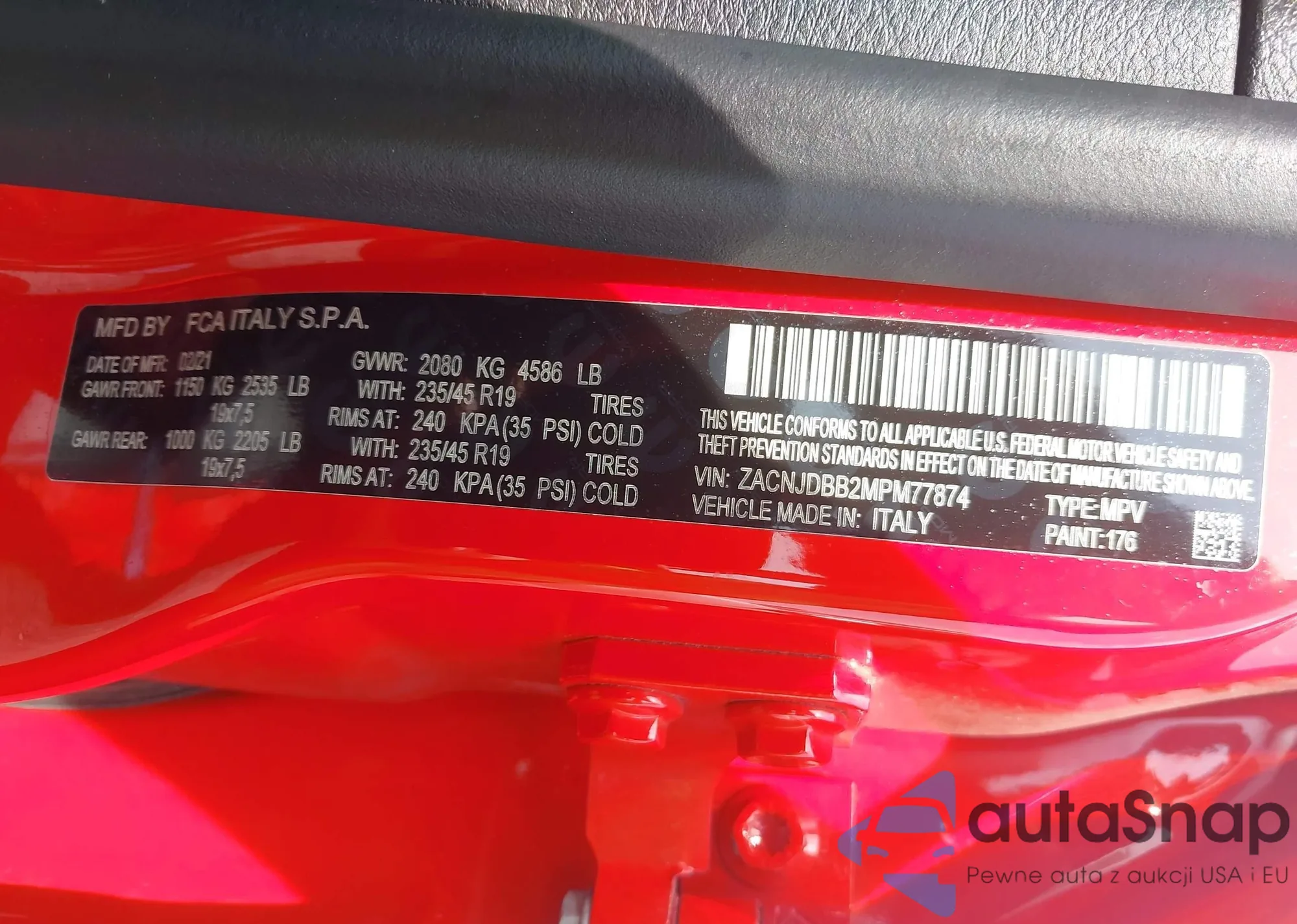 LOT: 42129855 VIN: ZACNJDBB2MPM77874