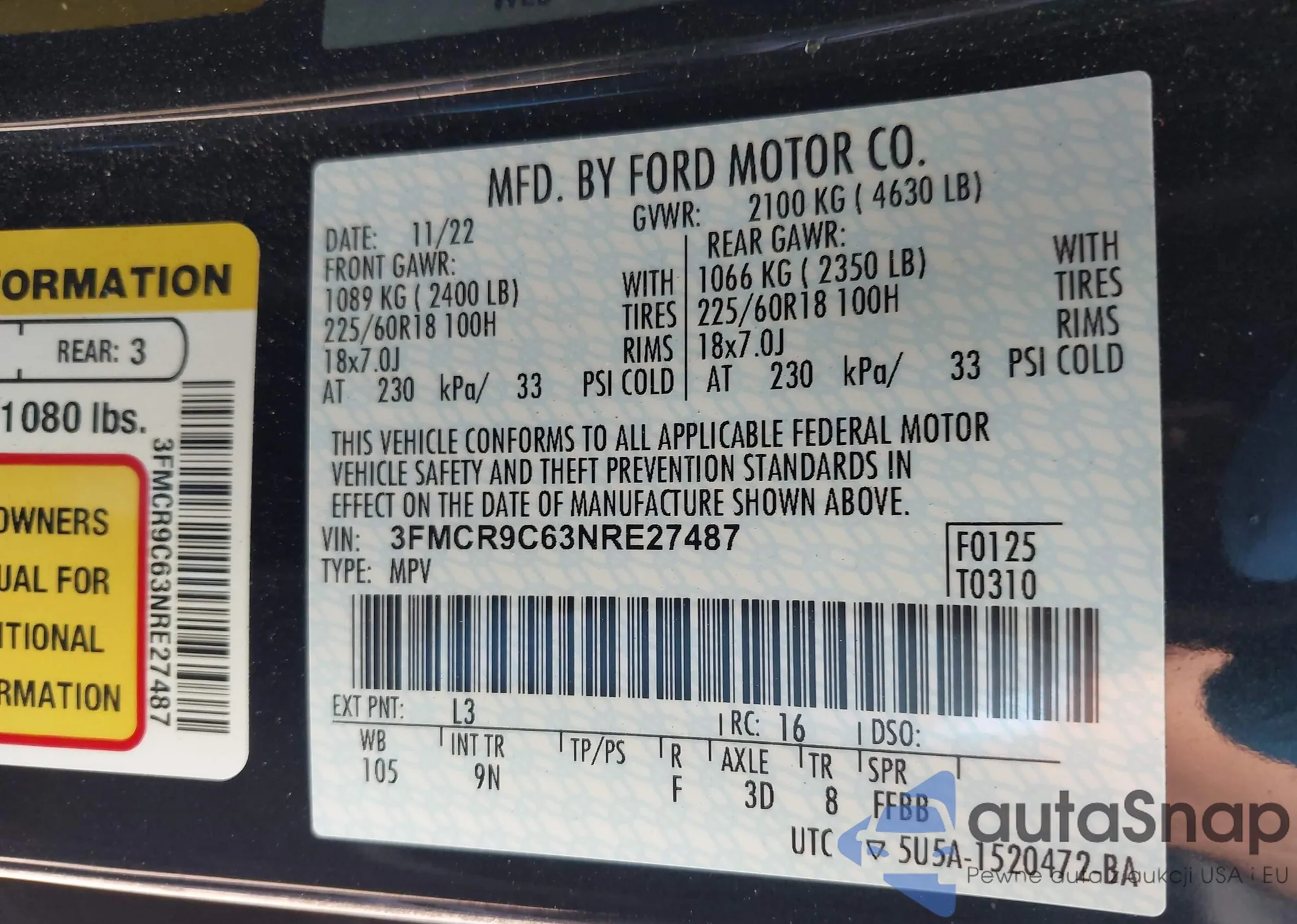 • VIN 3FMCR9C63NRE27487