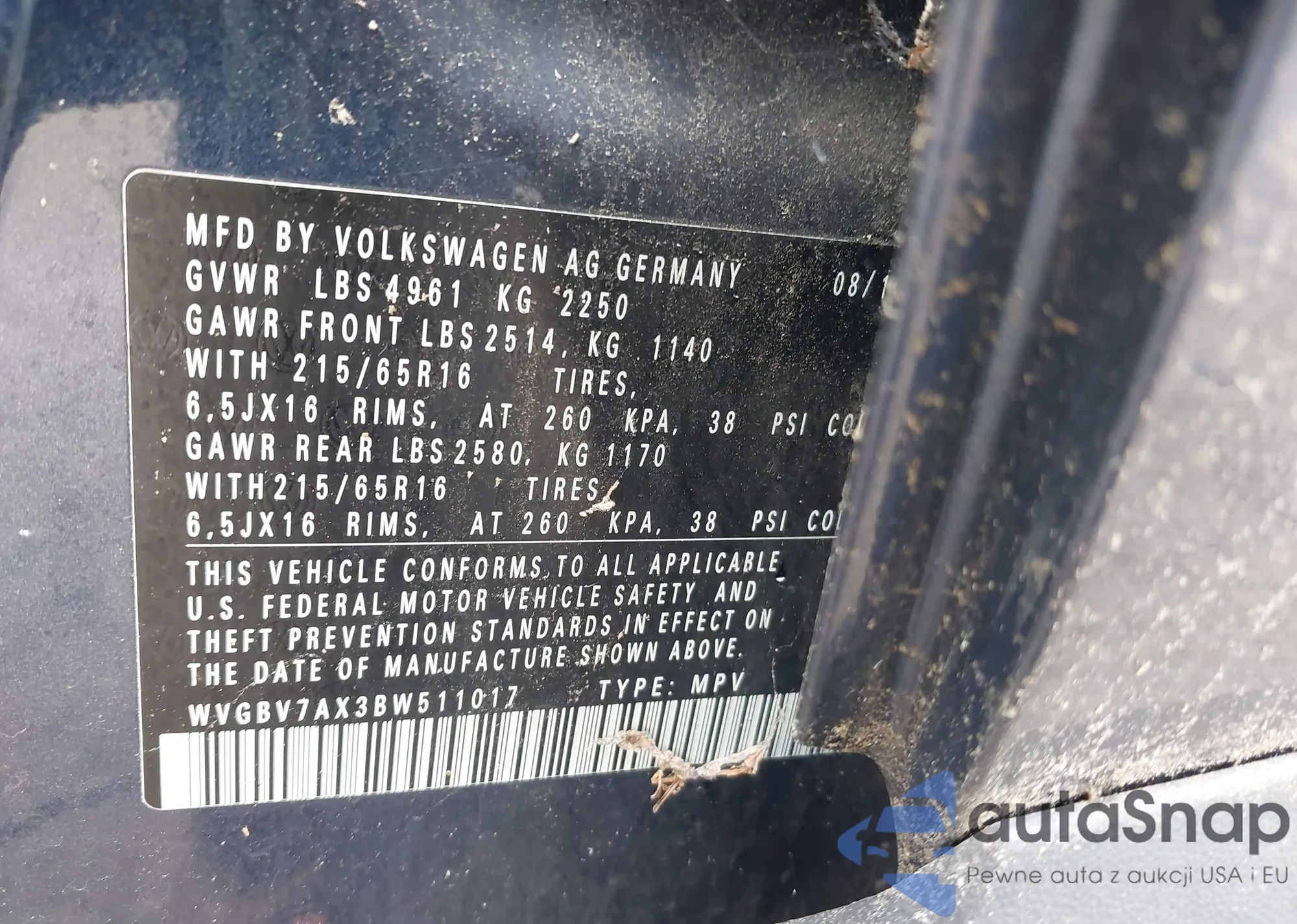 LOT: 42222868 VIN: WVGBV7AX3BW511017