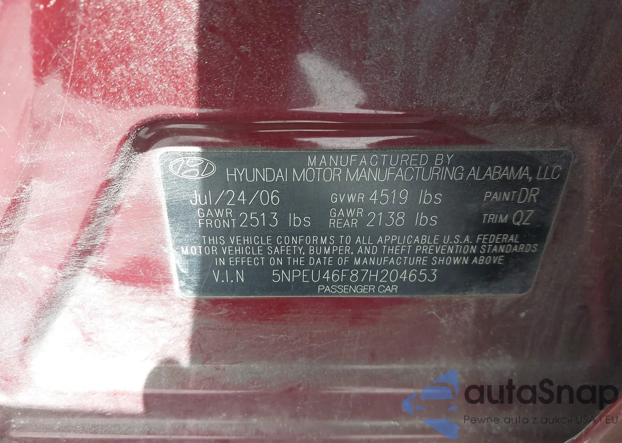• VIN 5NPEU46F87H204653