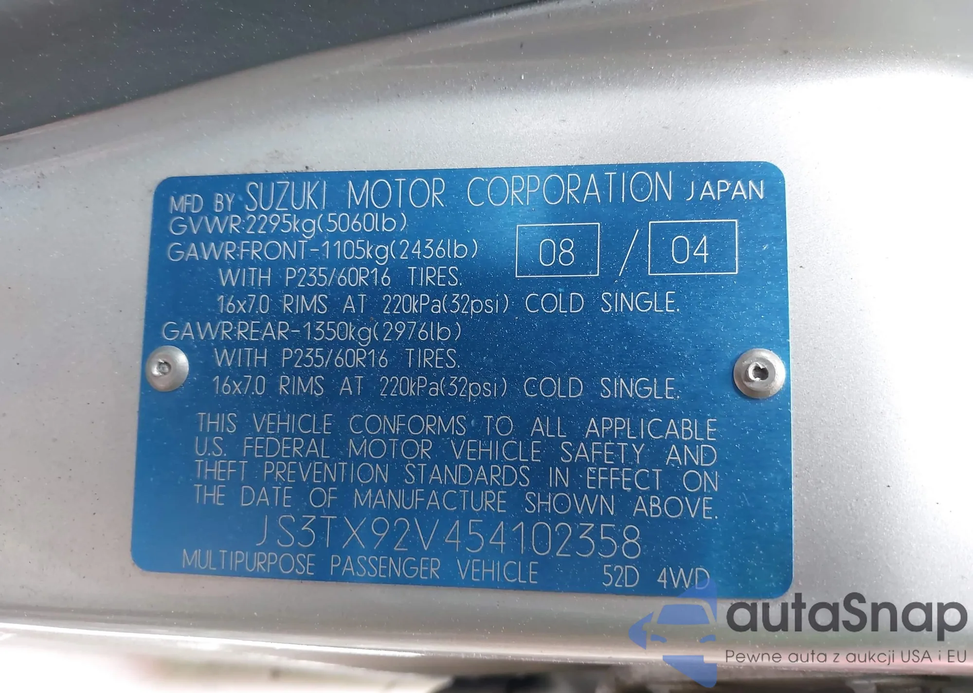 • VIN JS3TX92V454102358