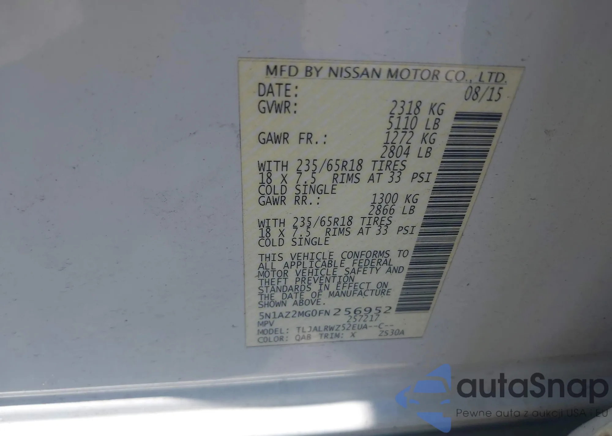 • VIN 5N1AZ2MH6JN172555