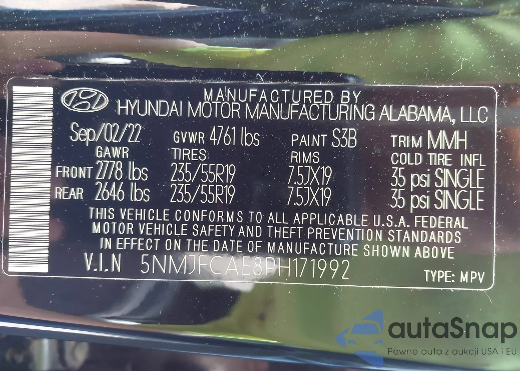 • VIN 5NMJFCAE8PH171992