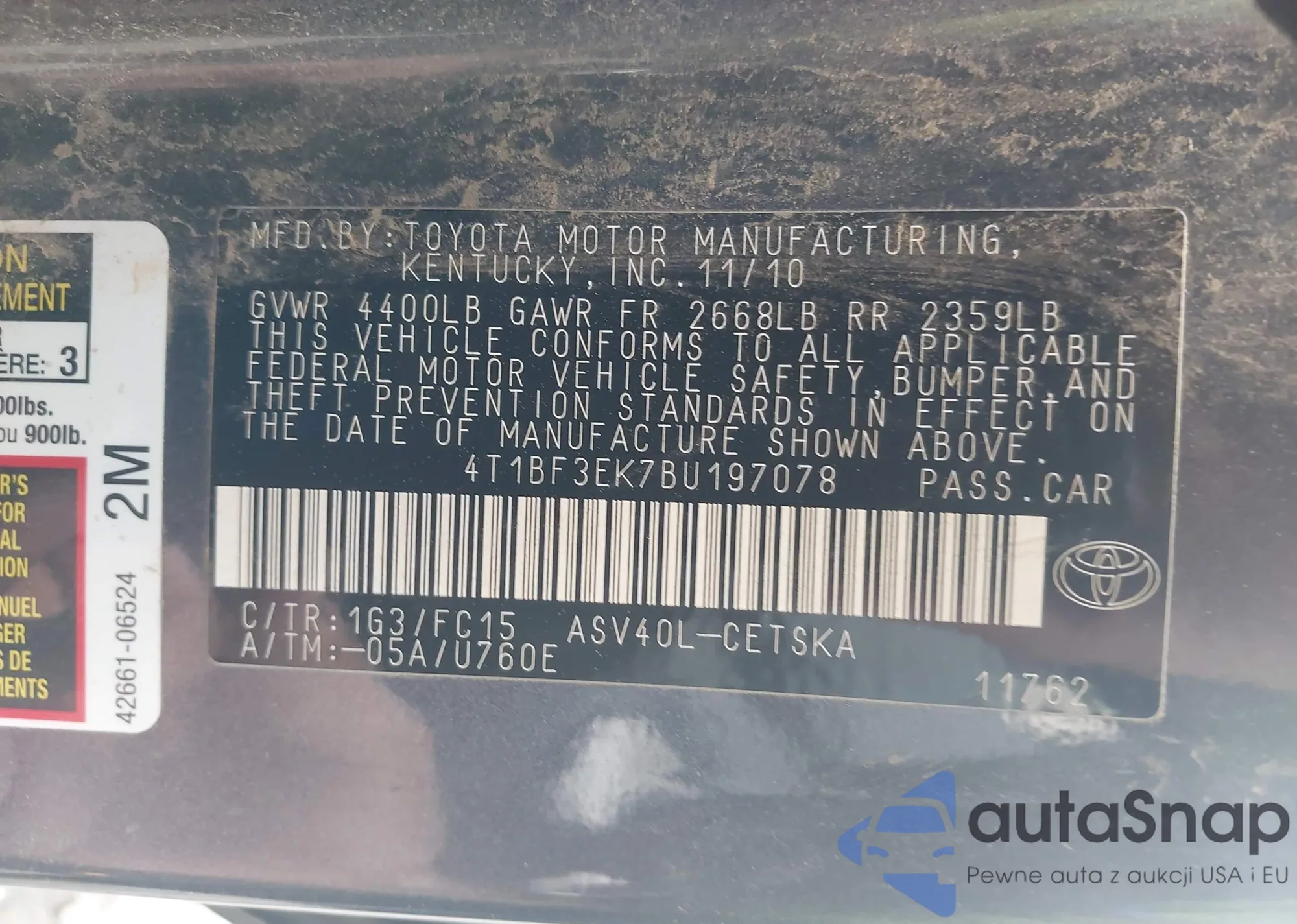 • VIN 4T1BF3EK7BU197078